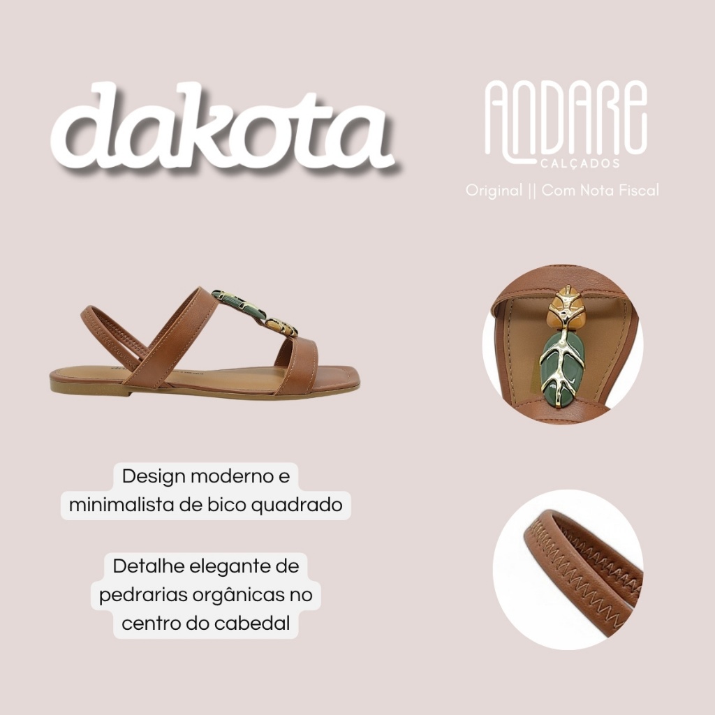 Sandalia Dakota Rasteira Conforto Feminina Pedraria Macia Original