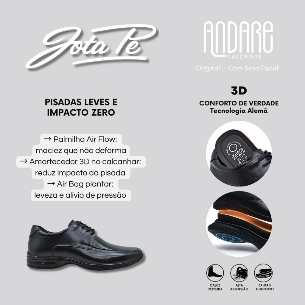 Sapato Social Masculino Jota Pe 3D Couro Legitimo Conforto Original
