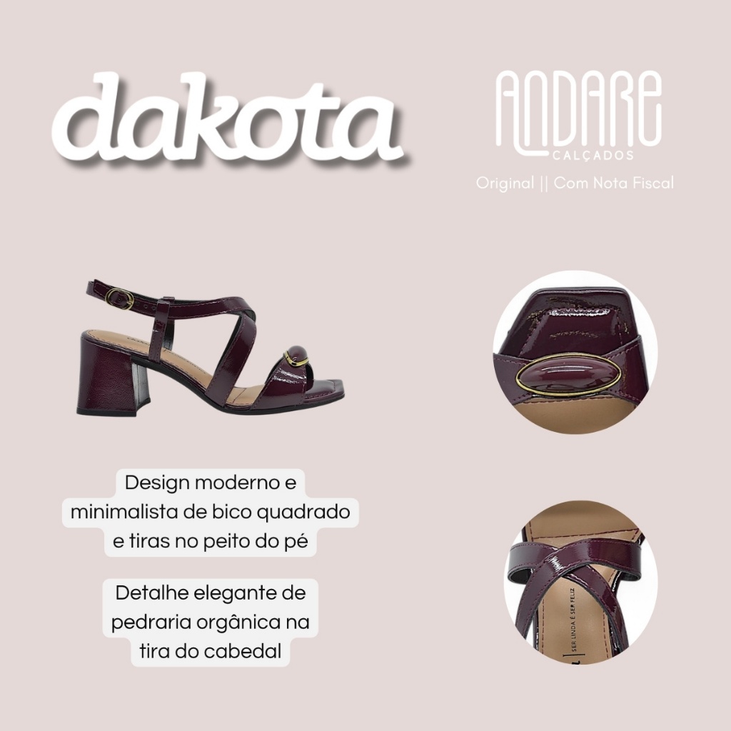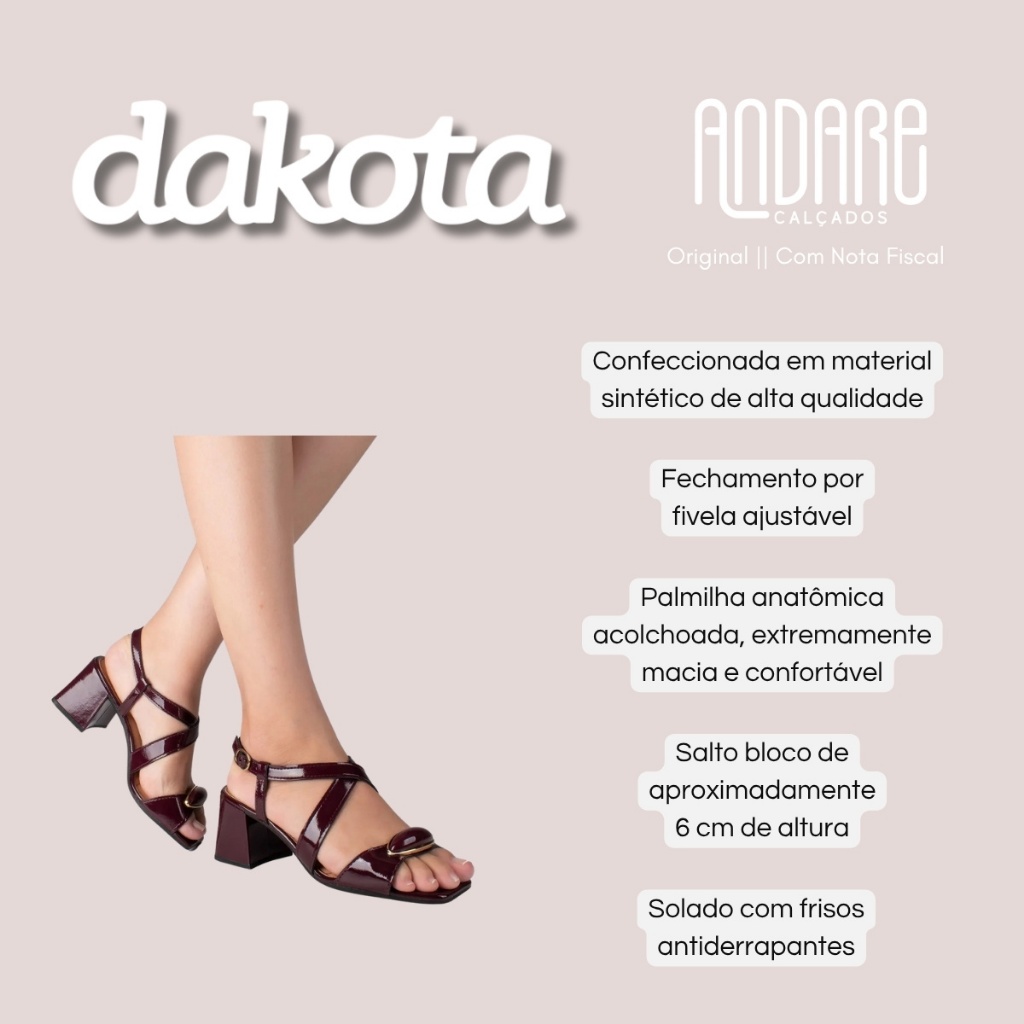 Sandalia Dakota Salto Bloco Feminina Conforto Tiras Macia Original