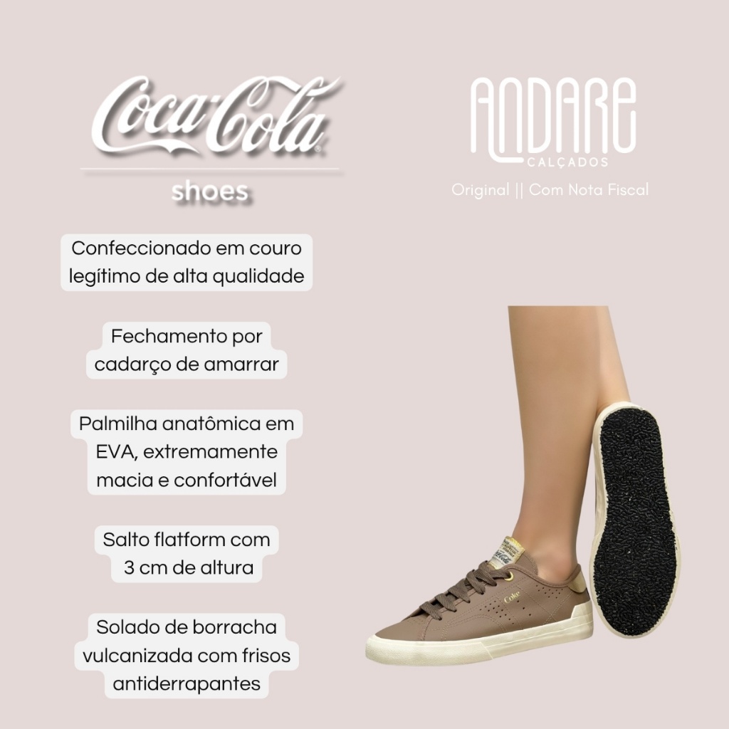 Tenis Coca Cola Feminino Fortune Leather Casual Conforto Original