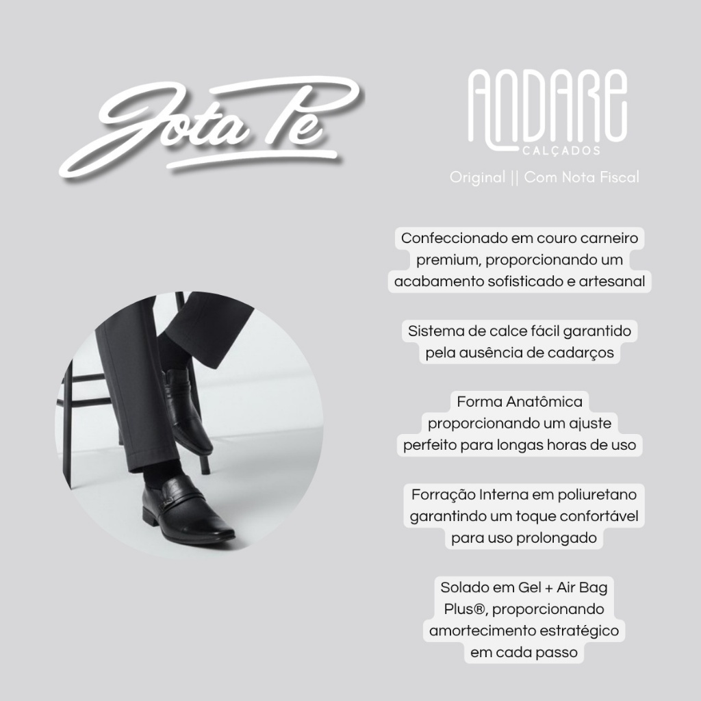 Sapato Social Jota Pe Air Bag Couro Conforto Slip On Macio Original