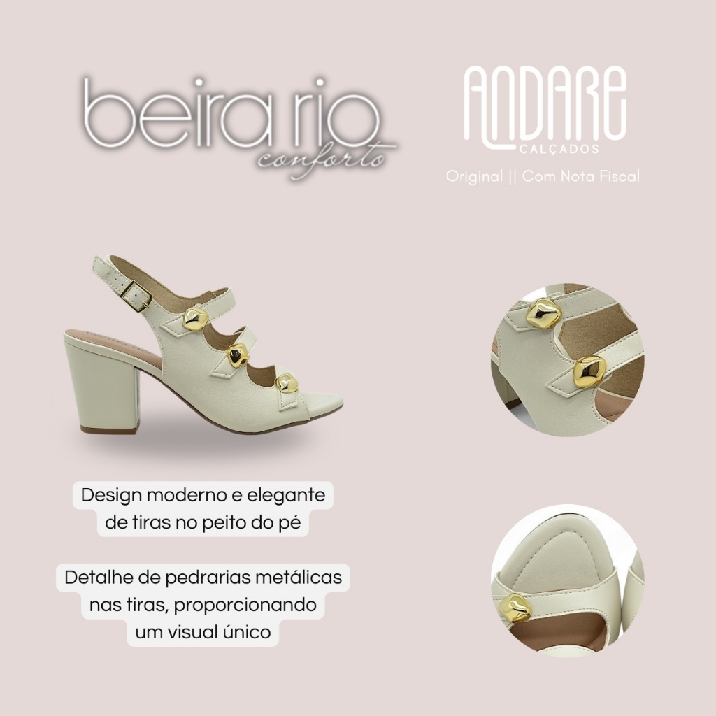 Sandalia Beira Rio Feminina Salto Bloco Conforto Macia Tiras Original