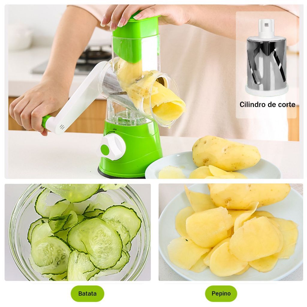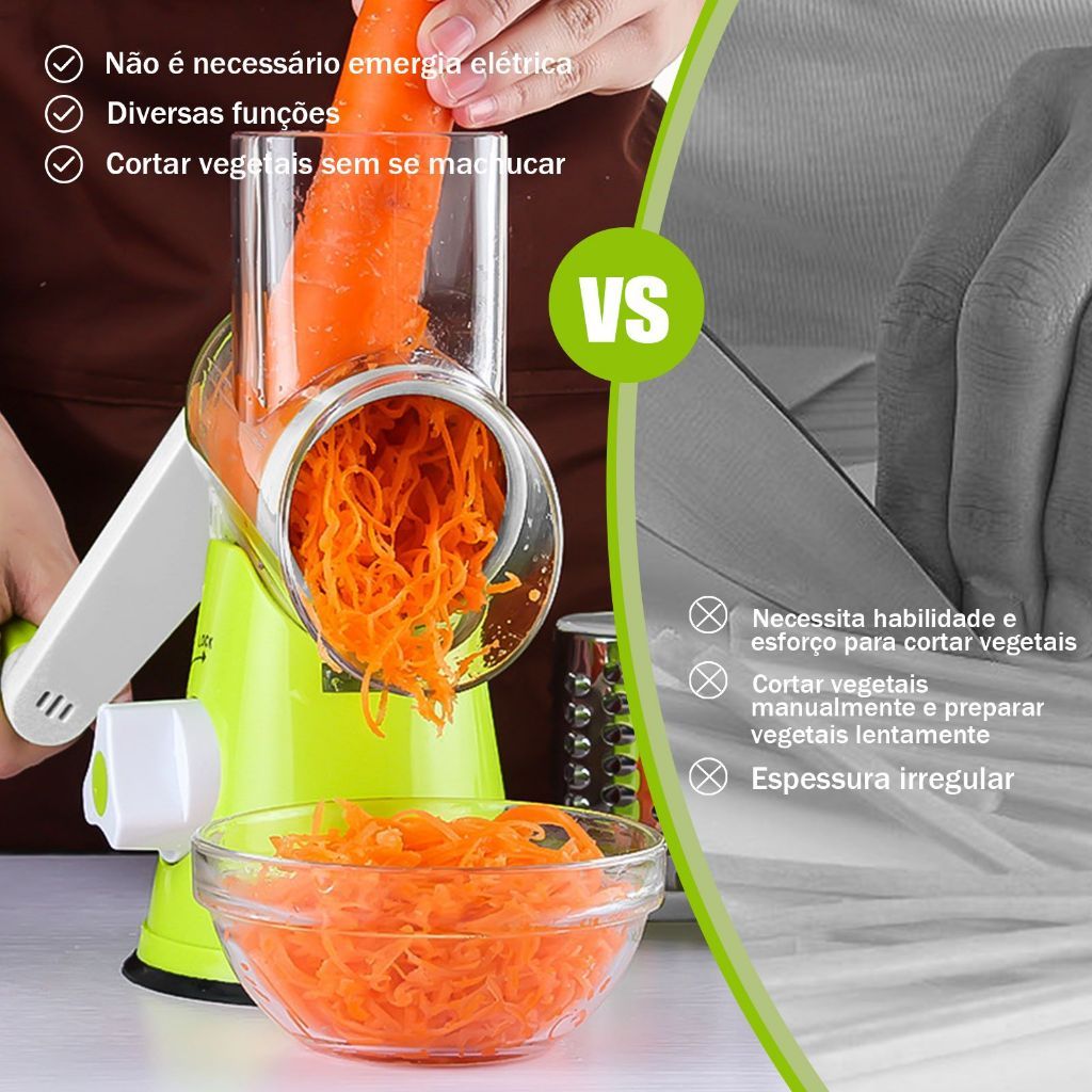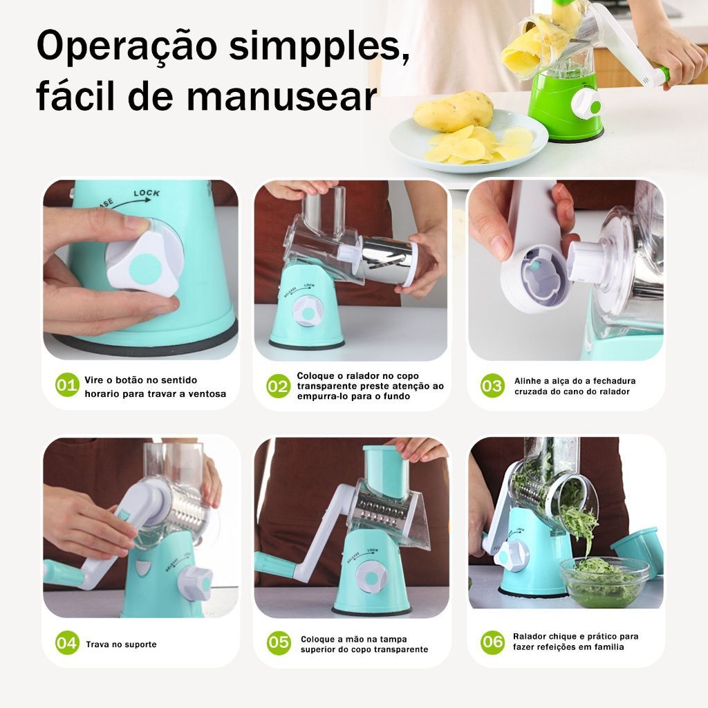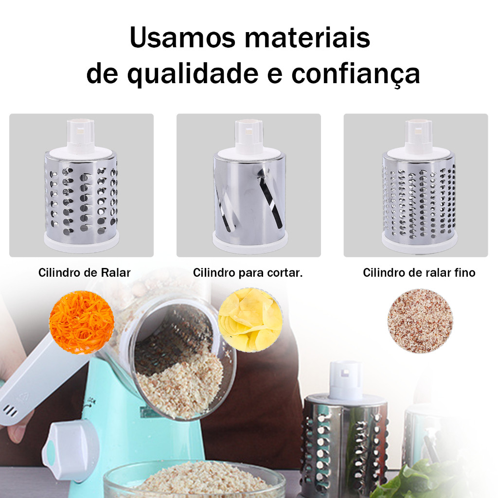 Ralador Fatiador Manual 3 Lâminas Inox Manivela Ventosa
