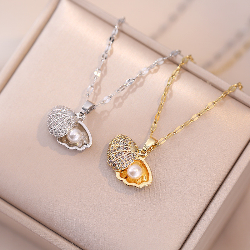 Colar Com Pingente De Concha De Pérola Dourada/Prateada , Corrente De Clavícula Feminina Requintada E Luxuosa , Acessóri