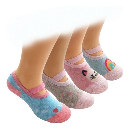 kit 4 pare Meia Sapatilha Antiderrapante Infantil 0 Até 10 Anos
