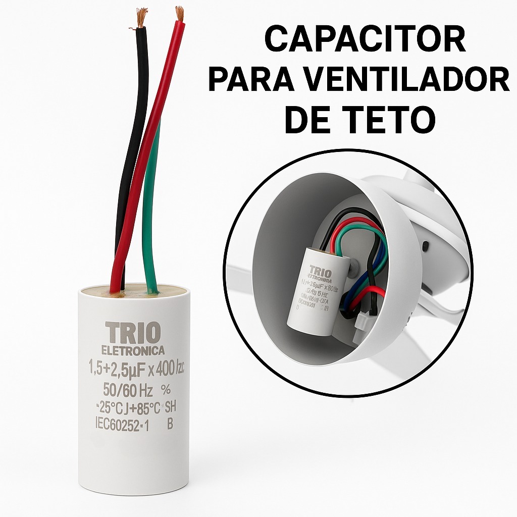 Kit 10 Capacitor Ventilador Teto 1,5+2,5 400 3 fios 220V (K-13-52)