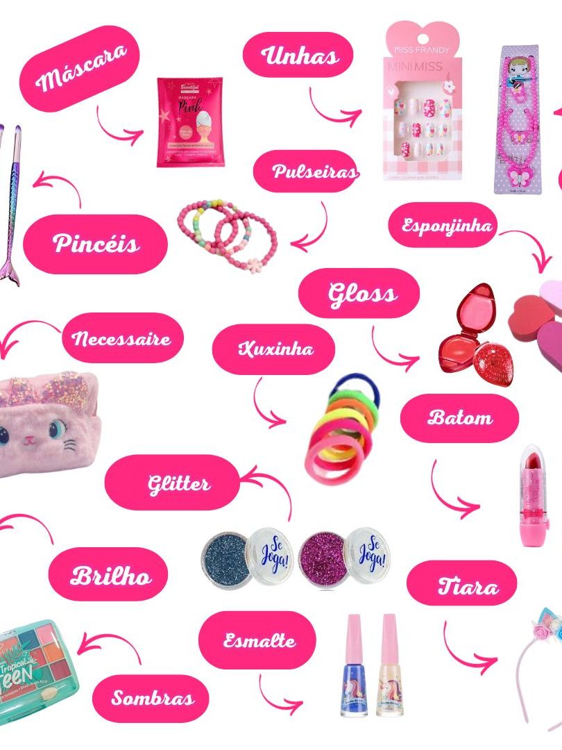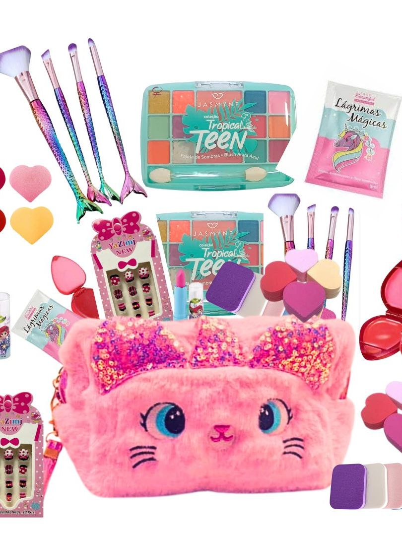 Kit maquiagem Bolsinha Sombras Pinceis batom gloss Unhas skin care completo