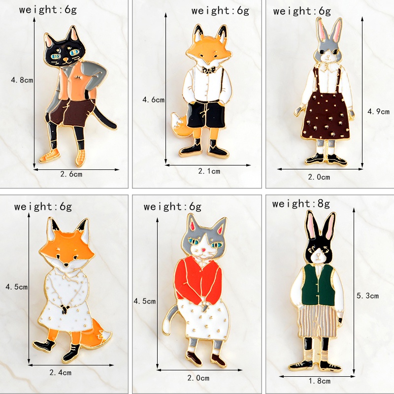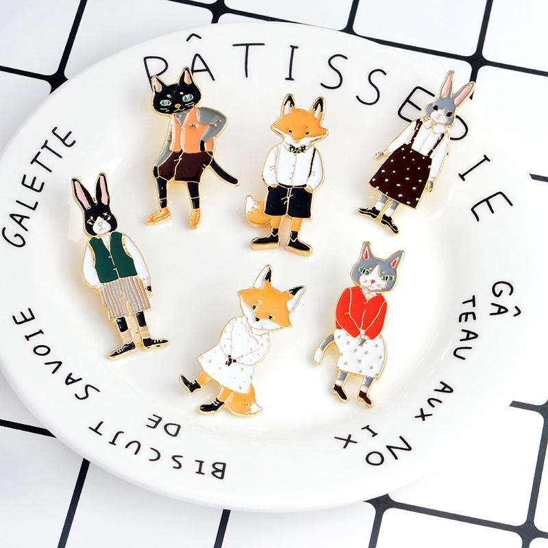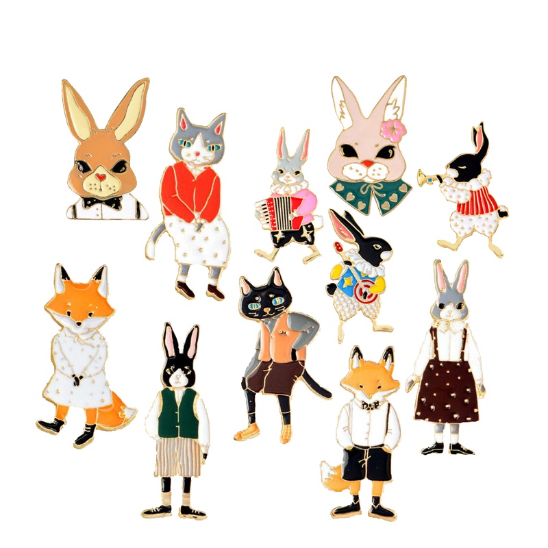 Pin Fofo Dos Desenhos Animados De Animais De Coelho Esmaltado Mr . Gato Fox Miss Broches Saco Jóias Jogador Lapela Emblema Presentes