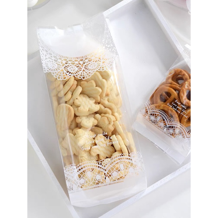 Lovely Lace Clear Biscuit Torrado De Biscoito Presente De Plástico Doces Embalagem Individual Auto-Adesiva OPP Cookie Panificação Decoração De Sacos Favoritos