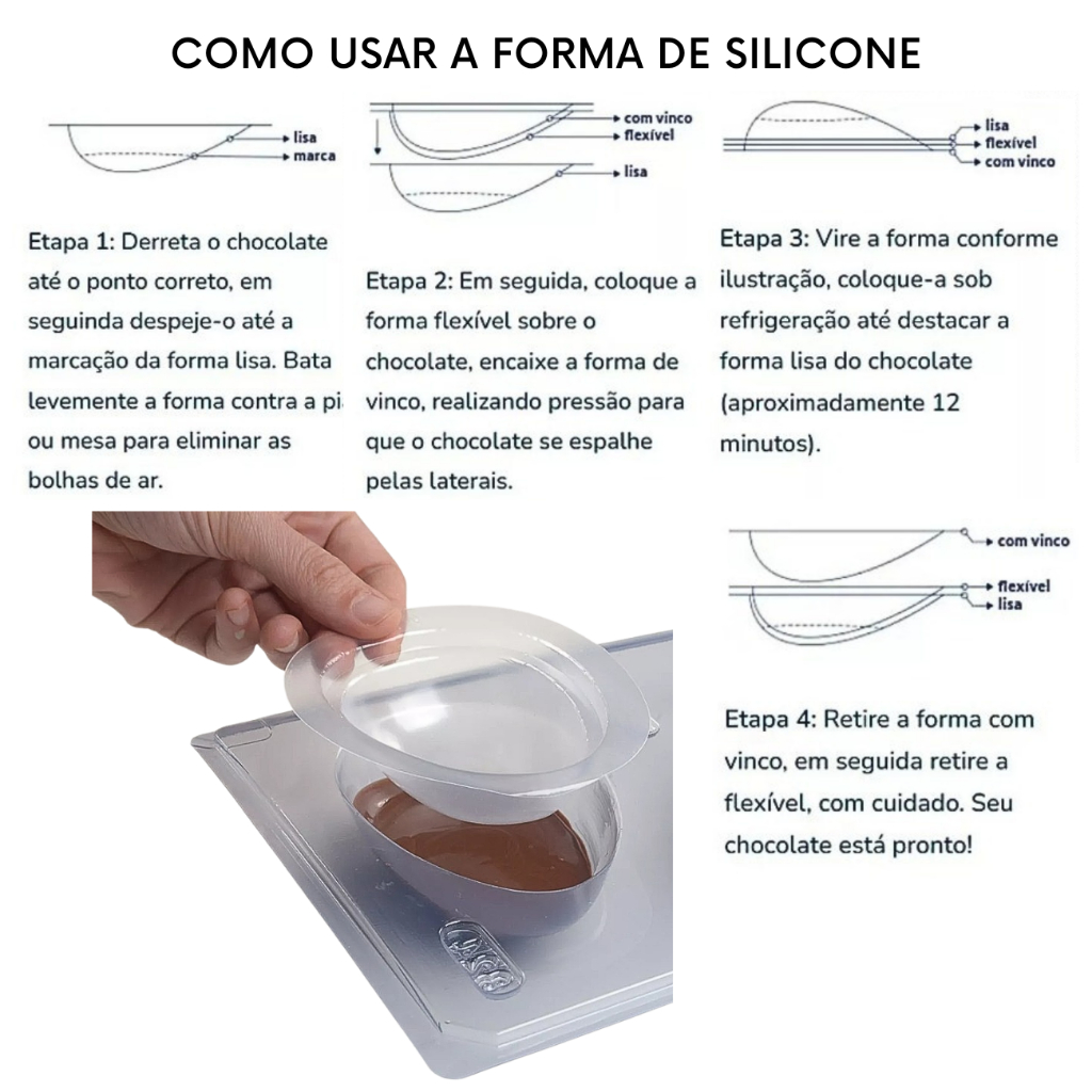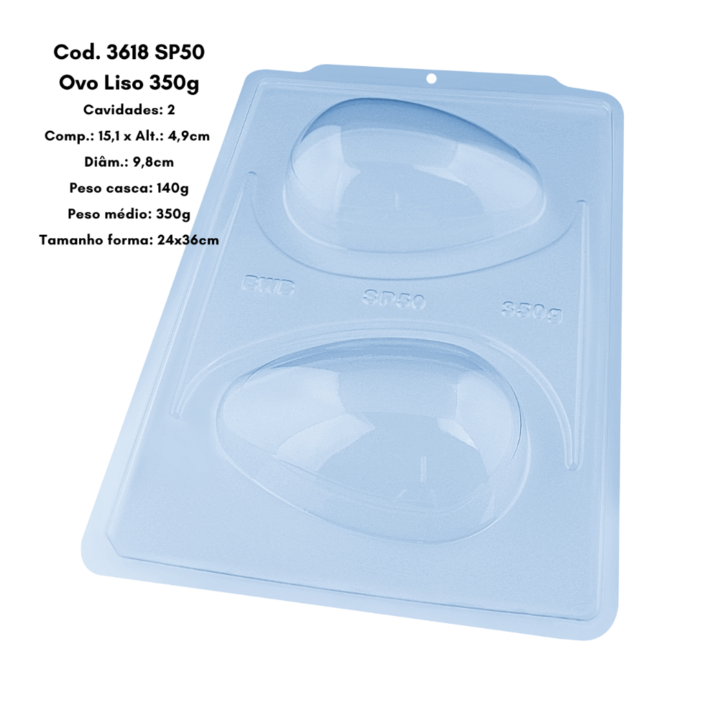 Forma Ovo de Páscoa Casca Lisa 350g SP 50 Cod. 3618 Semiprofissional com Silicone (3 partes) - BWB