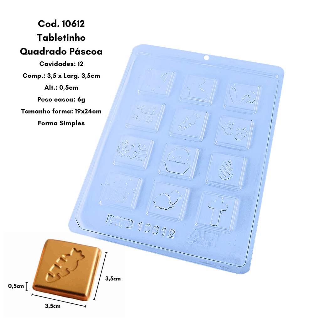 Forma p/ Chocolate Tabletinho Quadrado Páscoa Cod. 10612 Tradicional Simples Bwb