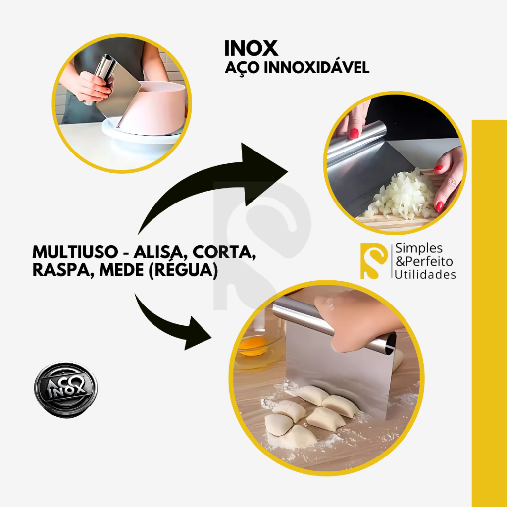Espátula Raspadora Kit 5, 3, 2 ou 1 Peça Cortadora Inox Cozinha Pão Chocolate Massas Alisador Régua