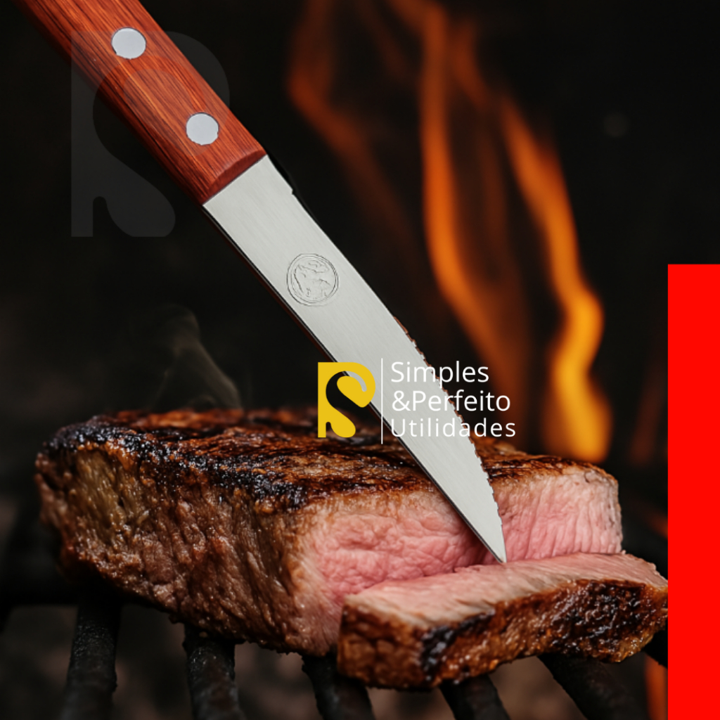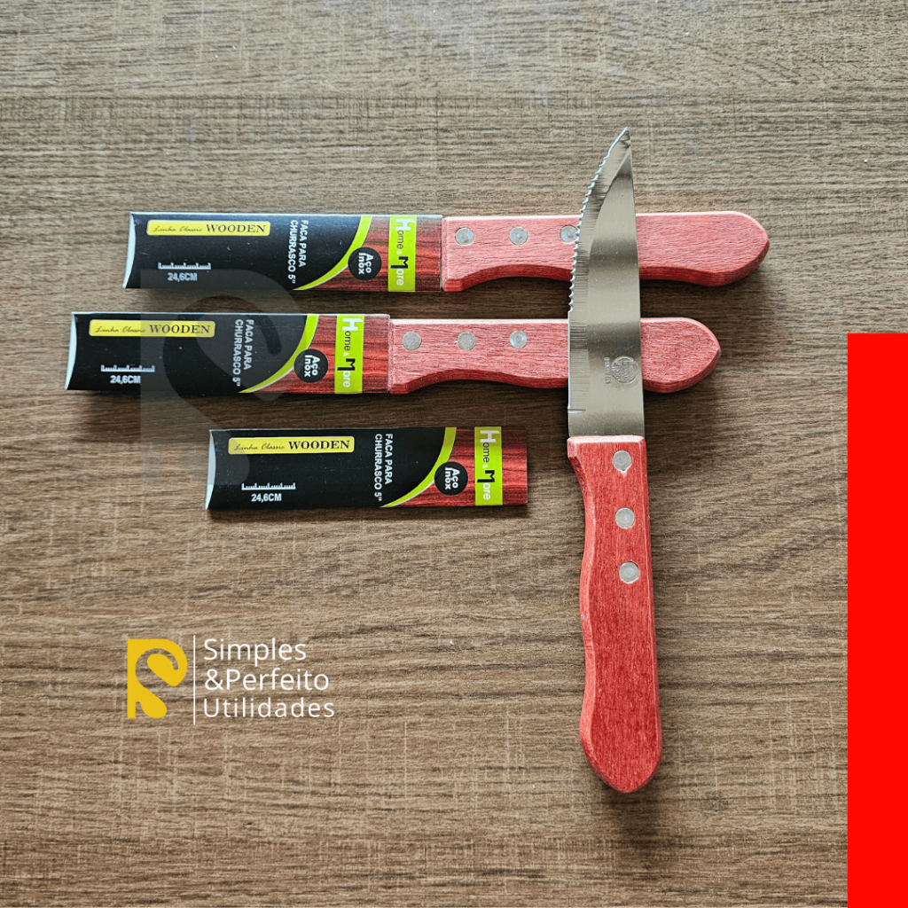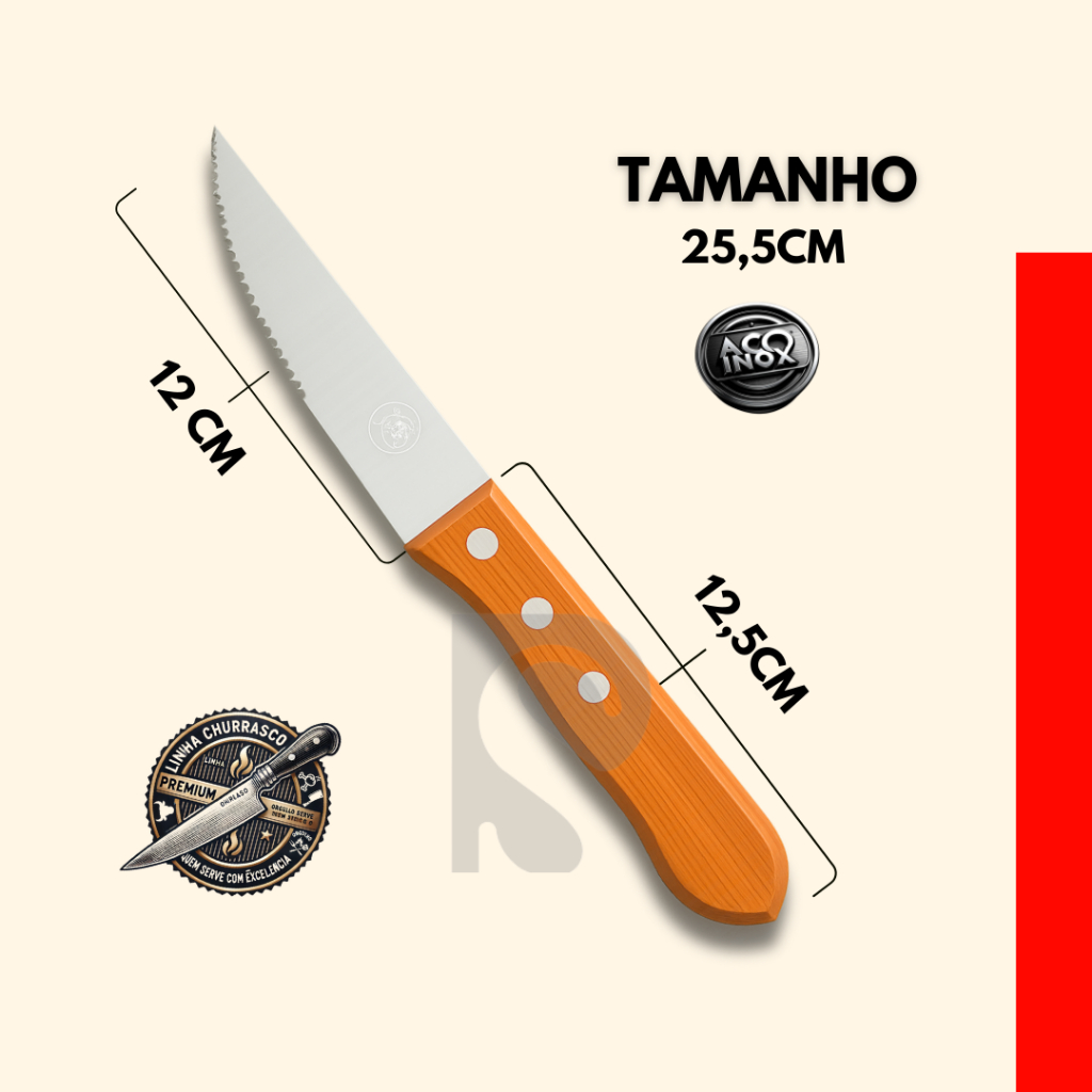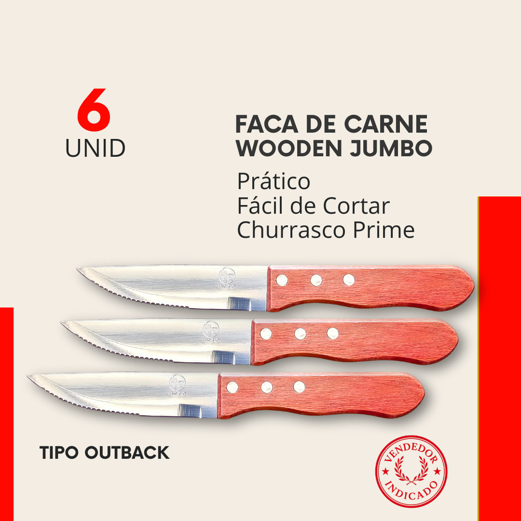 Jogo 12 Facas Para Carne Wooden Jumbo Cabo Tipo Outback Churrasco Restaurante Churrascaria