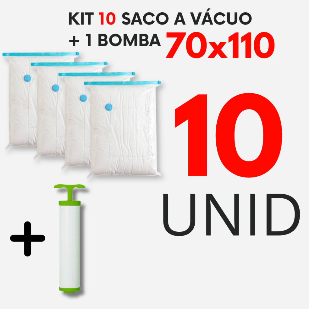 Kit 10 Saco a Vacuo Organizador + Bomba Reutilizáveis Viagem Organiza Mala Arnazena Roupa