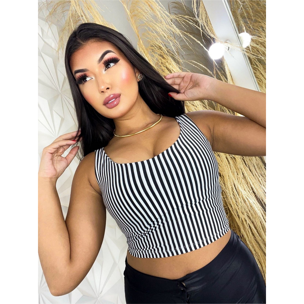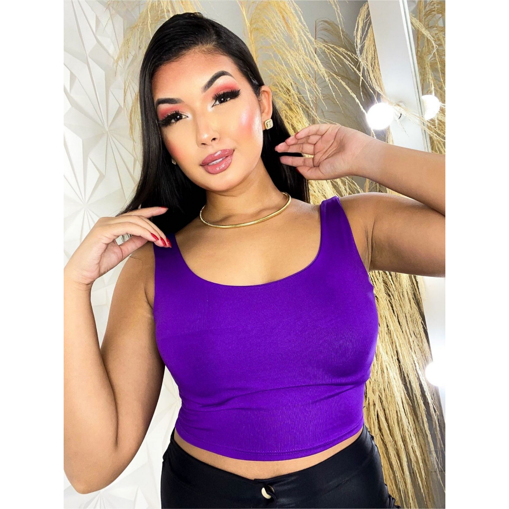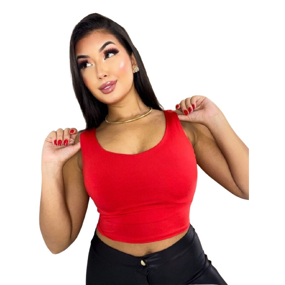 Cropped Feminino Top Bali Alça Grossa Tecido Suplex Forro Duplo Blusinha Fitness Academia