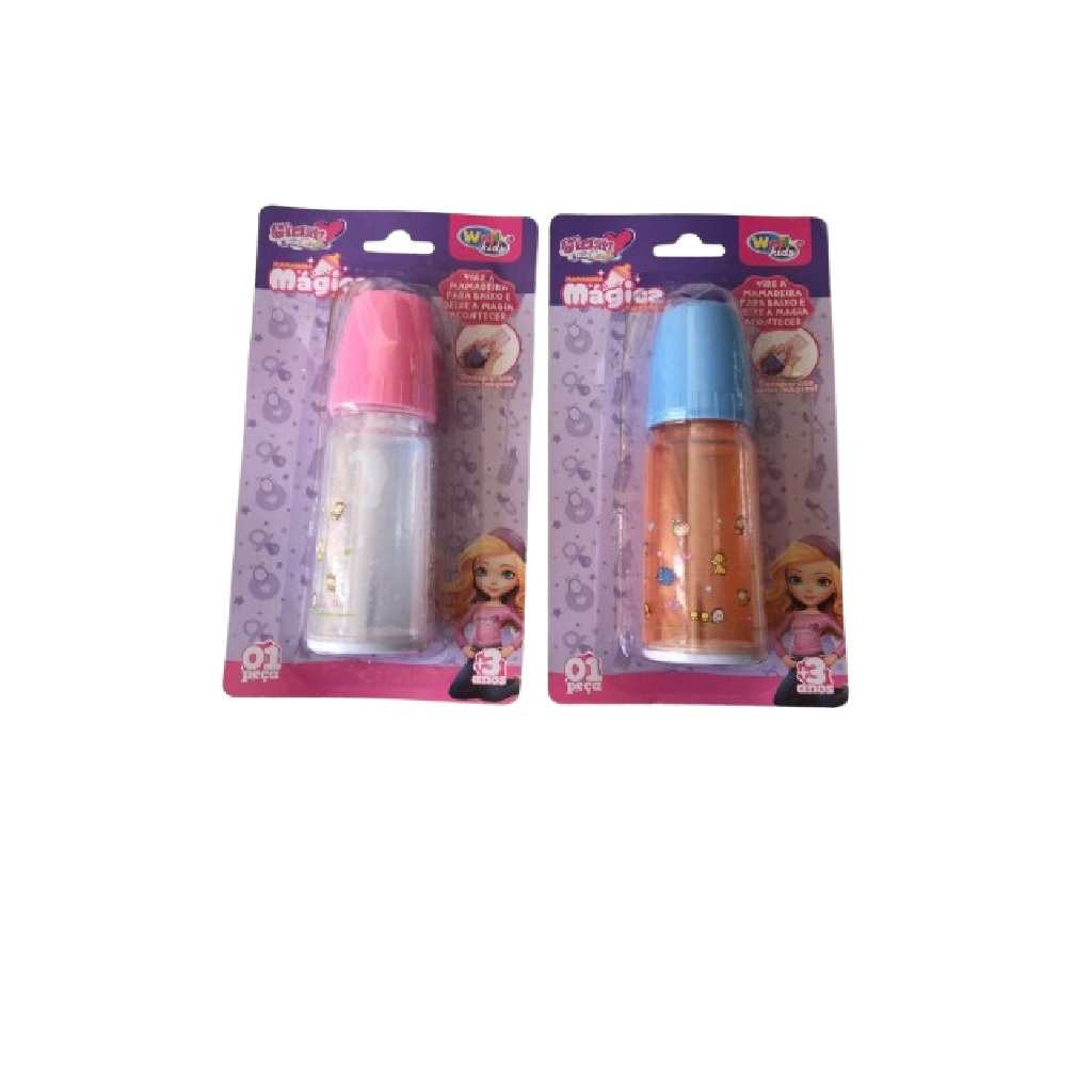 Kit 2 Mamadeiras Mágica Brinquedo Leite E Suco Para Boneca Reborn Bonecas Grandes Pequenas