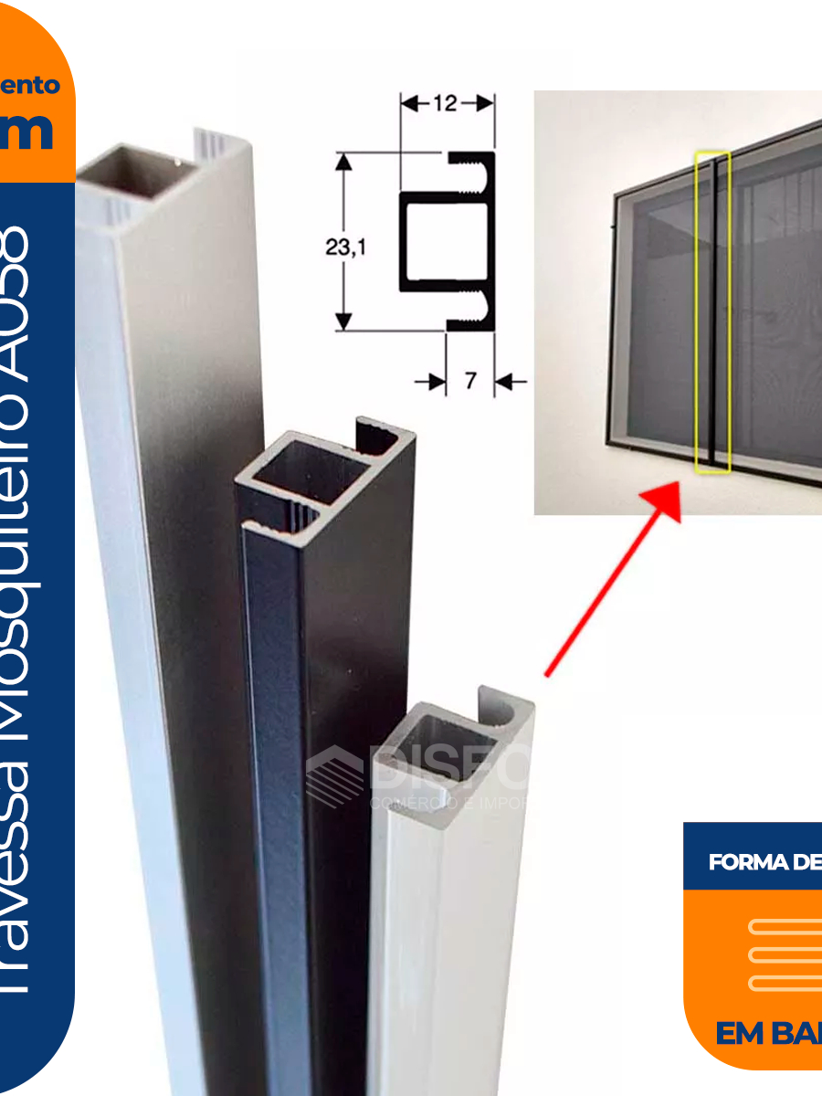 Perfil De Alumínio Travessa Mosquiteiro A058 - 0,40 / 0,50 / 0,60 / 0,80 / 1,00 / 1,20m