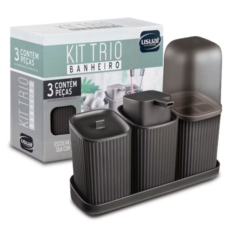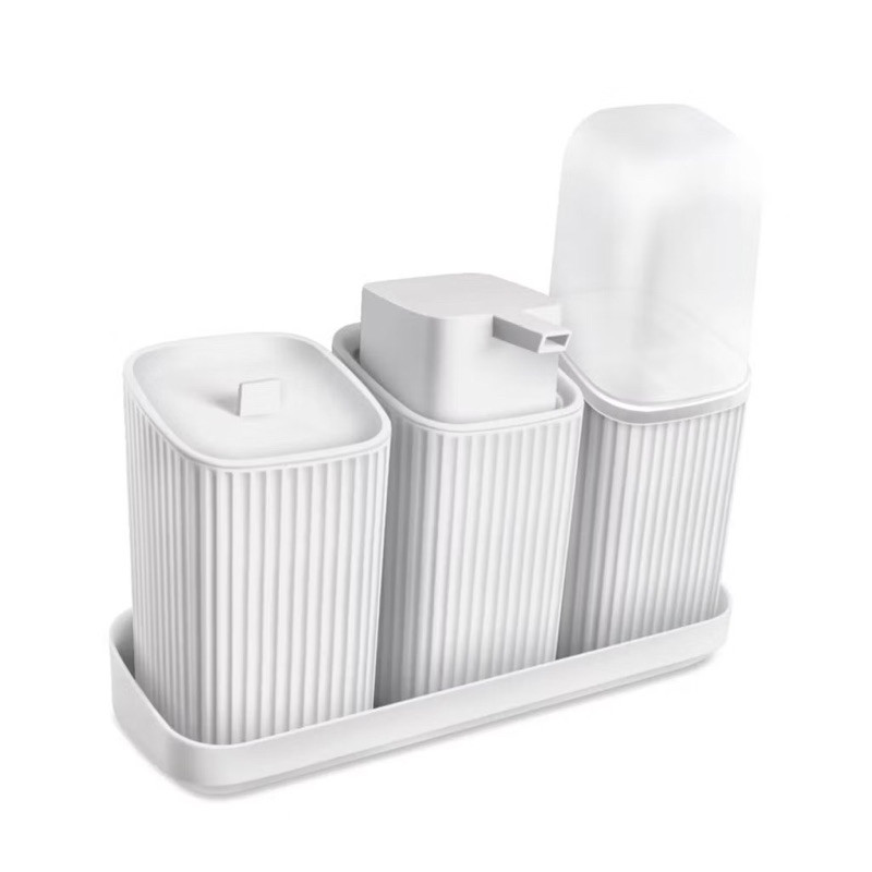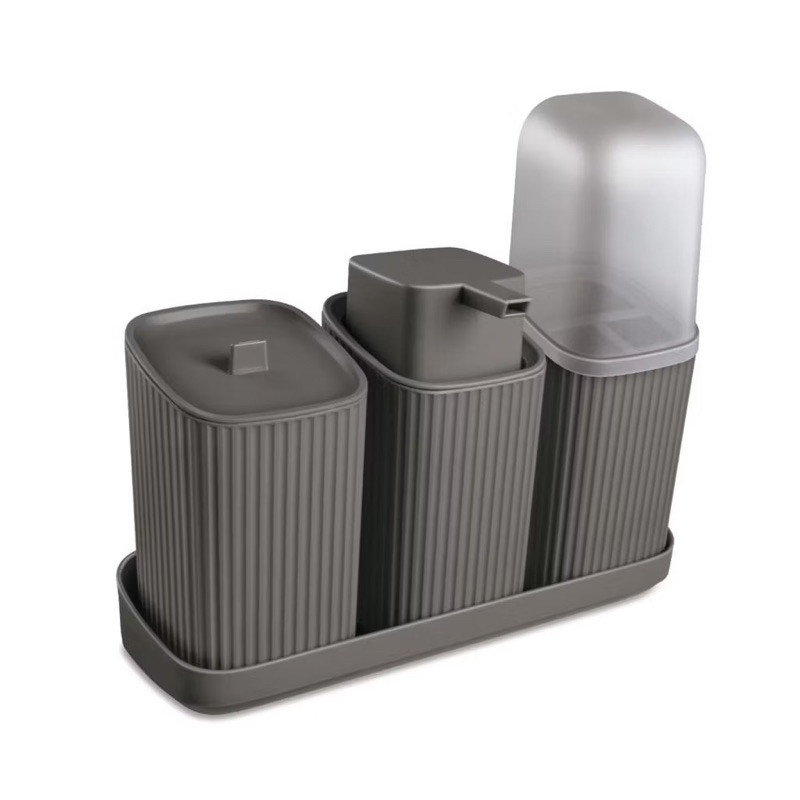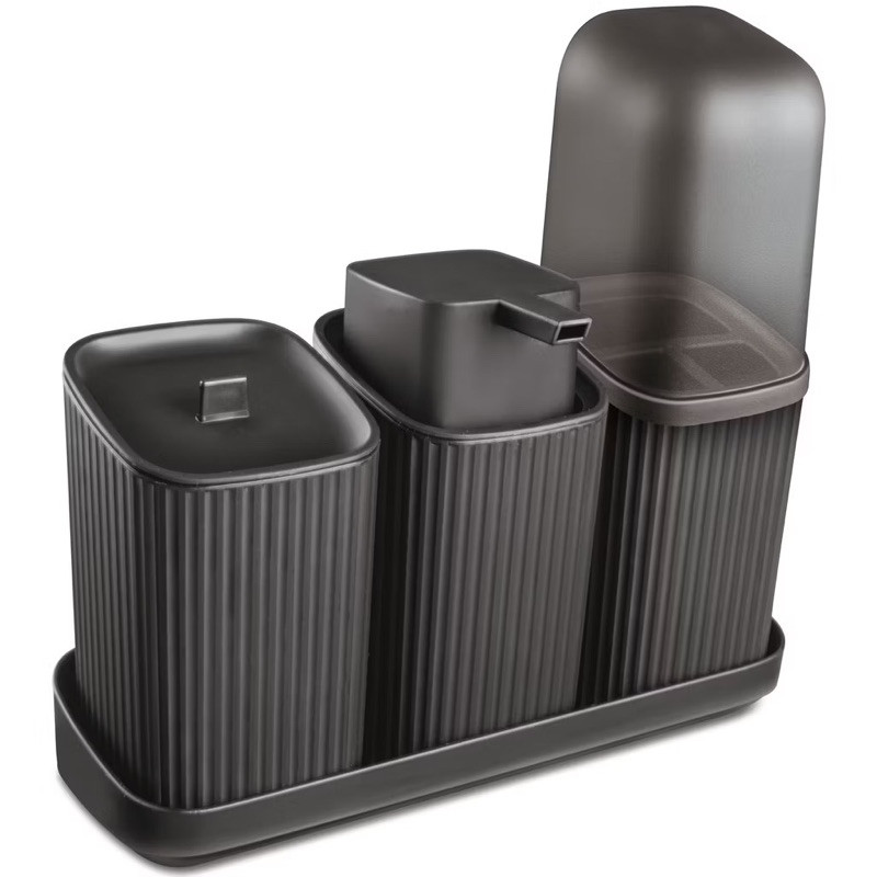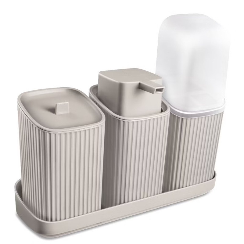 Kit 3 Acessórios Banheiro Lavabo Com Bandeja Dispense Sabonete Líquido Porta Algodão Porta Escovas
