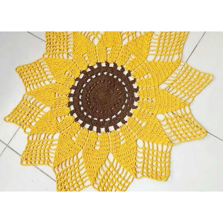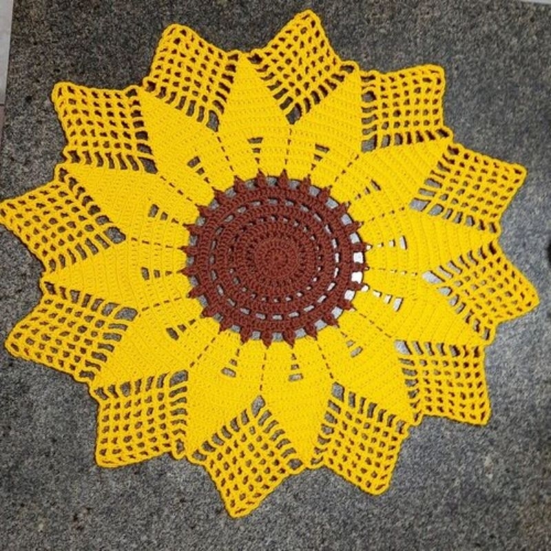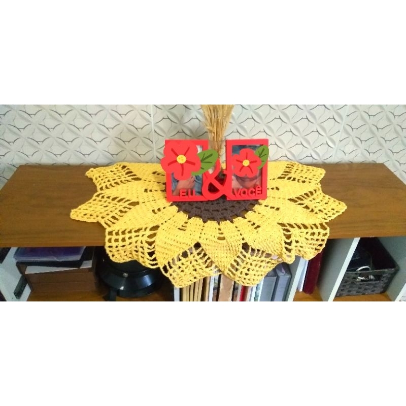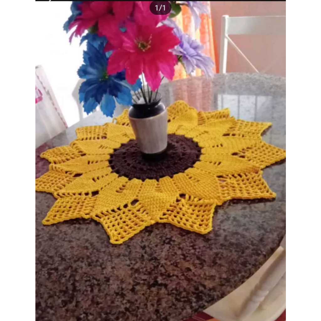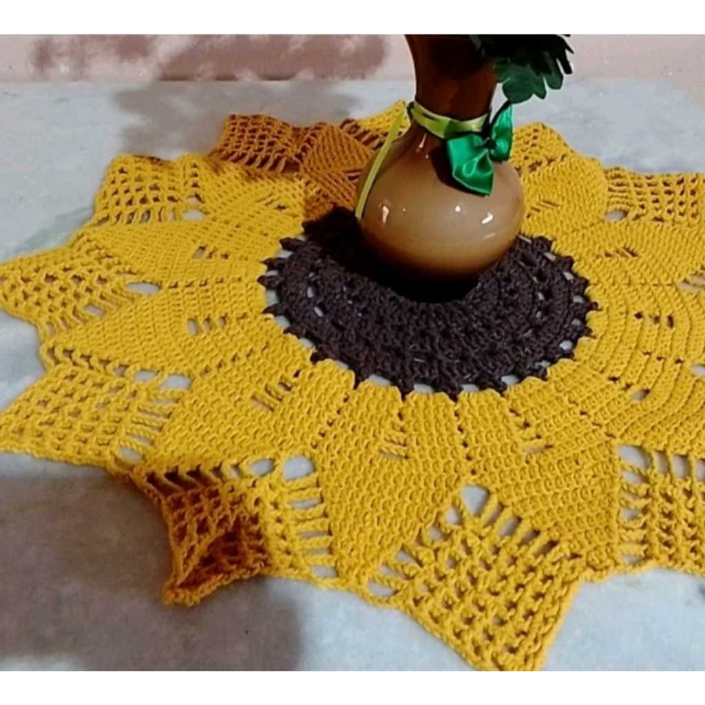 Centro De Mesa Em Crochê Girassol, Toalha de mesa Croche com 70cm Decoração Elegante para sua Casa