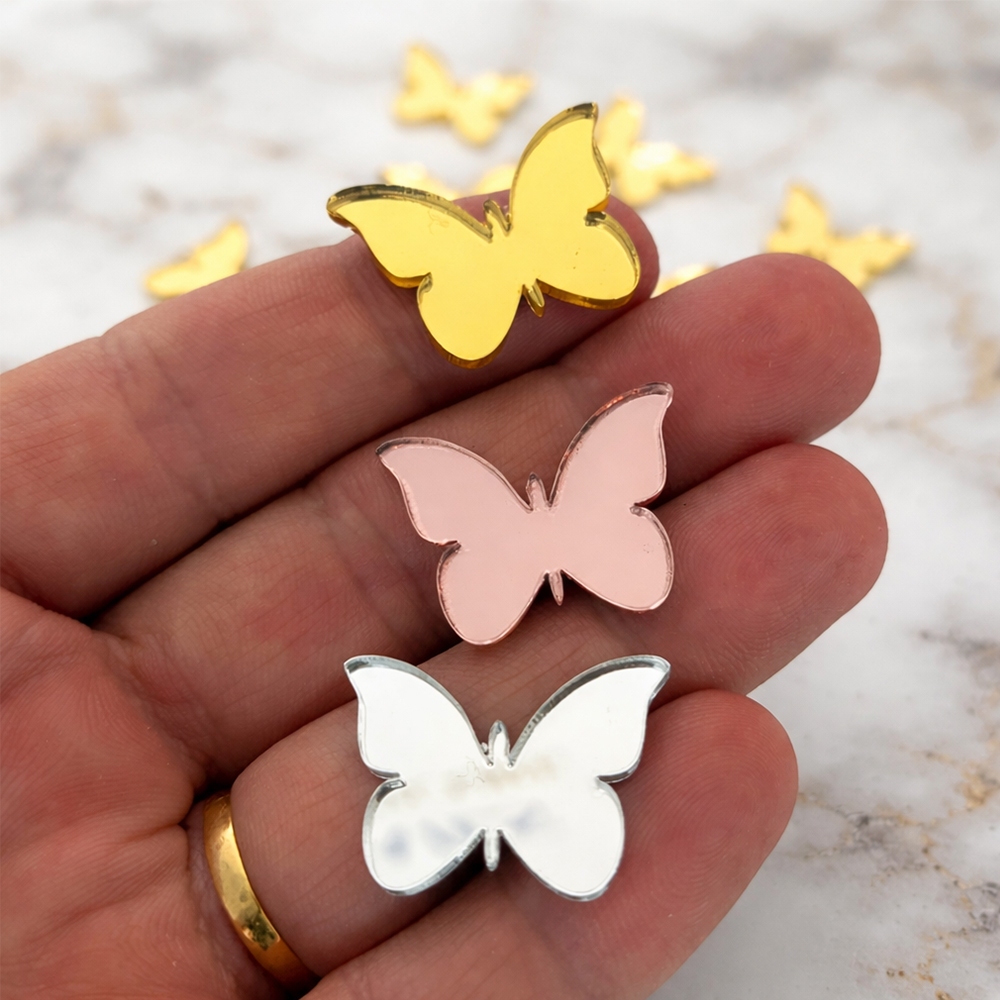 Kit com 8/10/15/20/30 Mini Borboletas em Acrílico Espelhado Decorativas