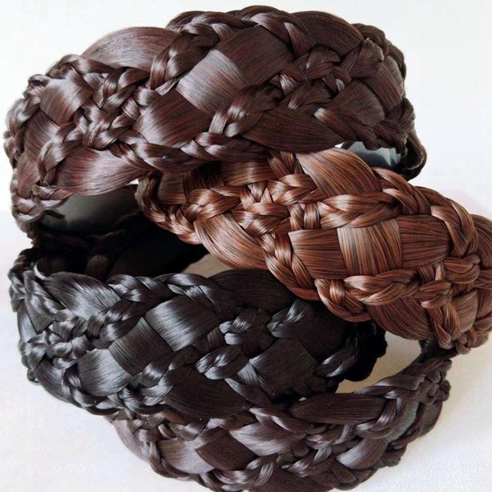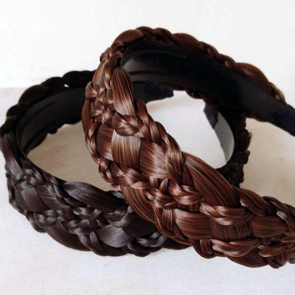 ADAMES Seis Strand Peruca Tiara Espinha De Peixe Trança Torção Trançada Aba Larga Antiderrapante Argola De Cabelo