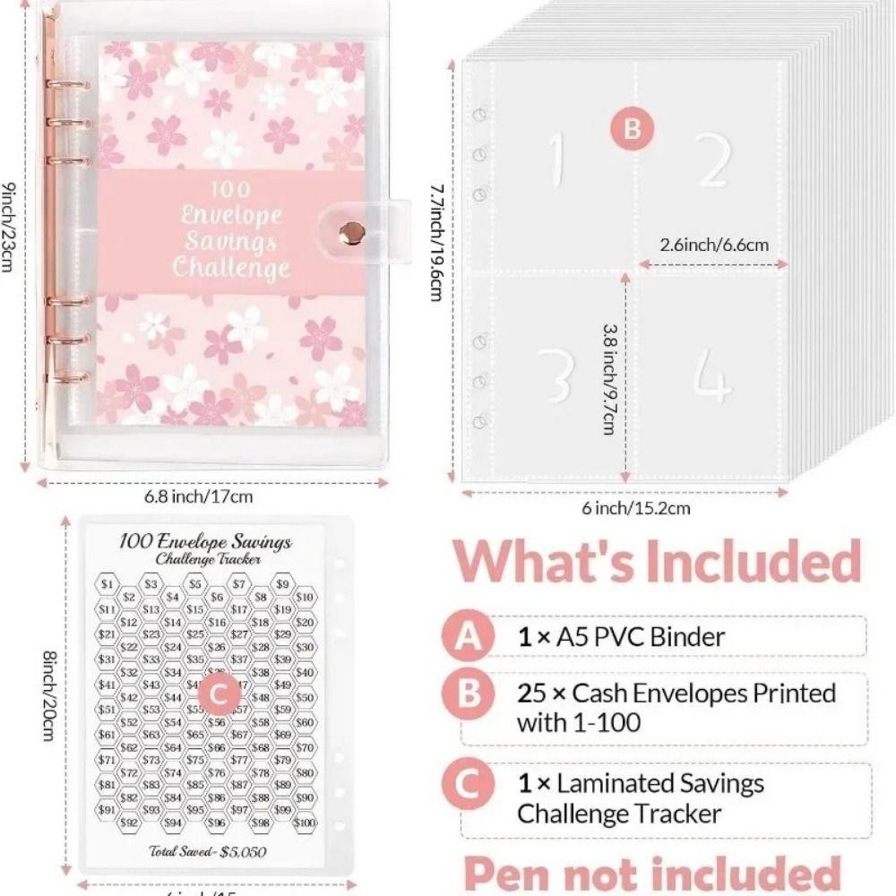 DION1UE Desafio De Poupança De Envelope 100 , Gerenciamento Financeiro Para Economia De Dinheiro Fichário De 100 Envelop