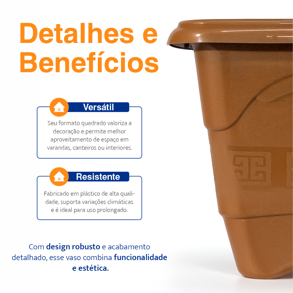 Kit 3 Vasos Quadrado Grande Terracota 12,5L Resistente Jardim De Casa Plantas Flores Decoração