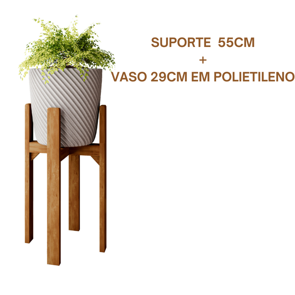 Suporte Legs para Vaso Cachepot em Madeira Pinus 55cm /40cm com Vaso de Plantas