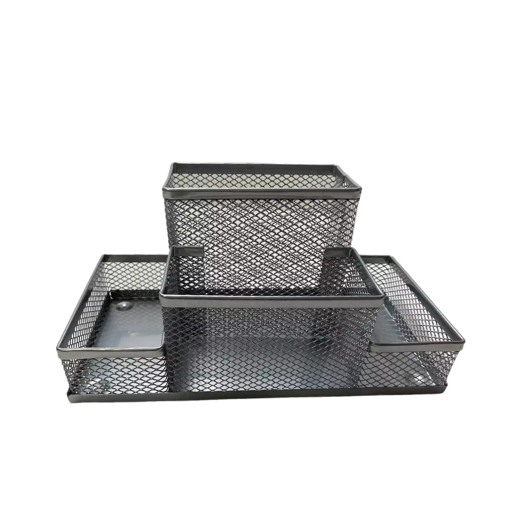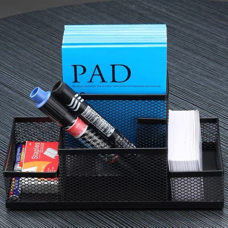 organizador metal porta treco caneta de mesa com 4 divisórias escritório