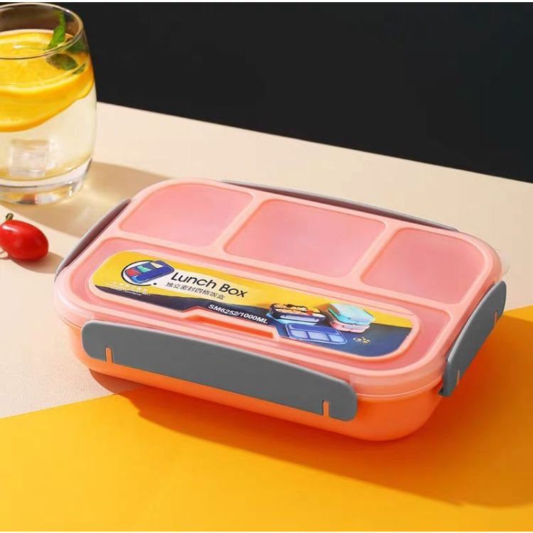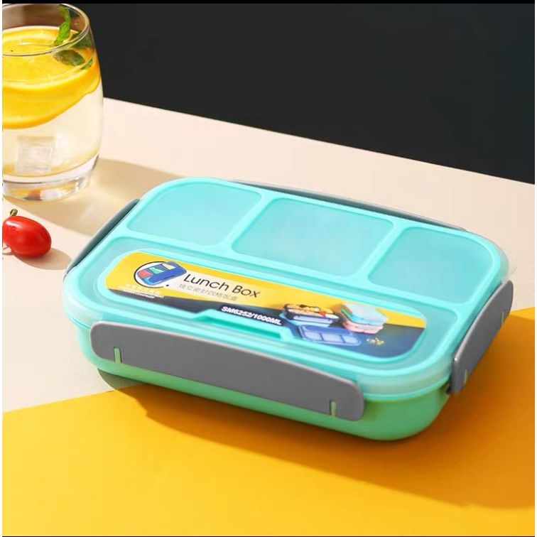 Marmita Lancheira térmica pp+silicone 4 Divisórias Conjunto De Garfo 1000ML