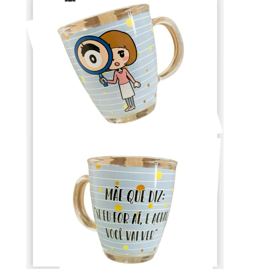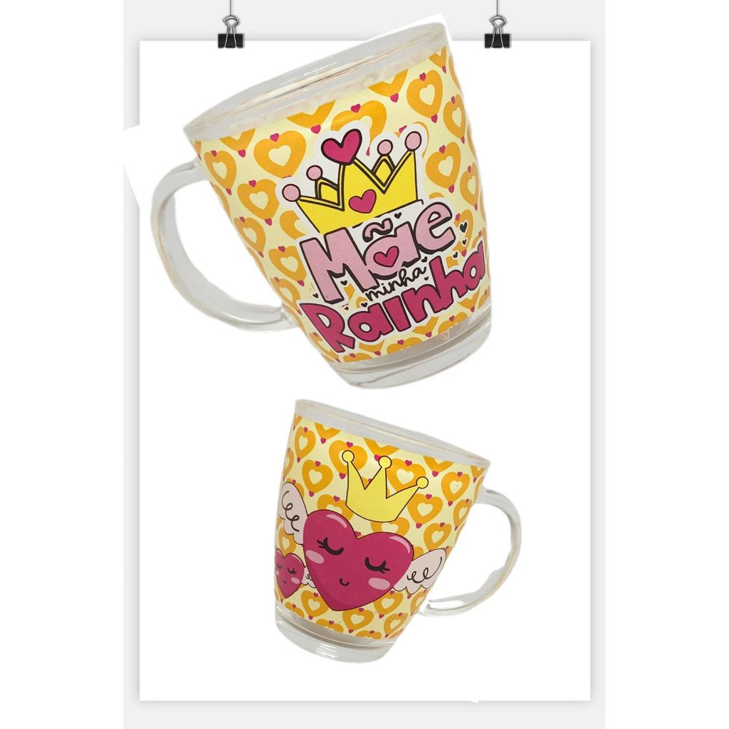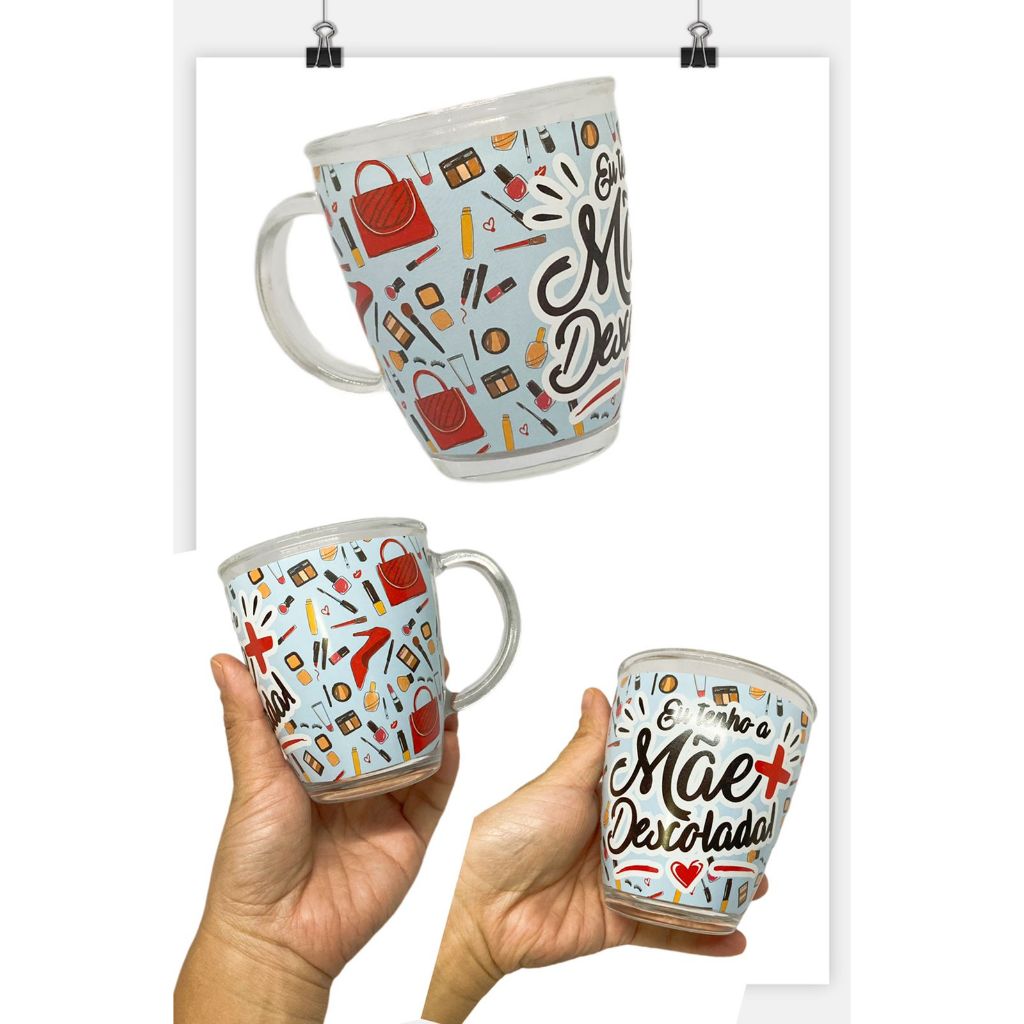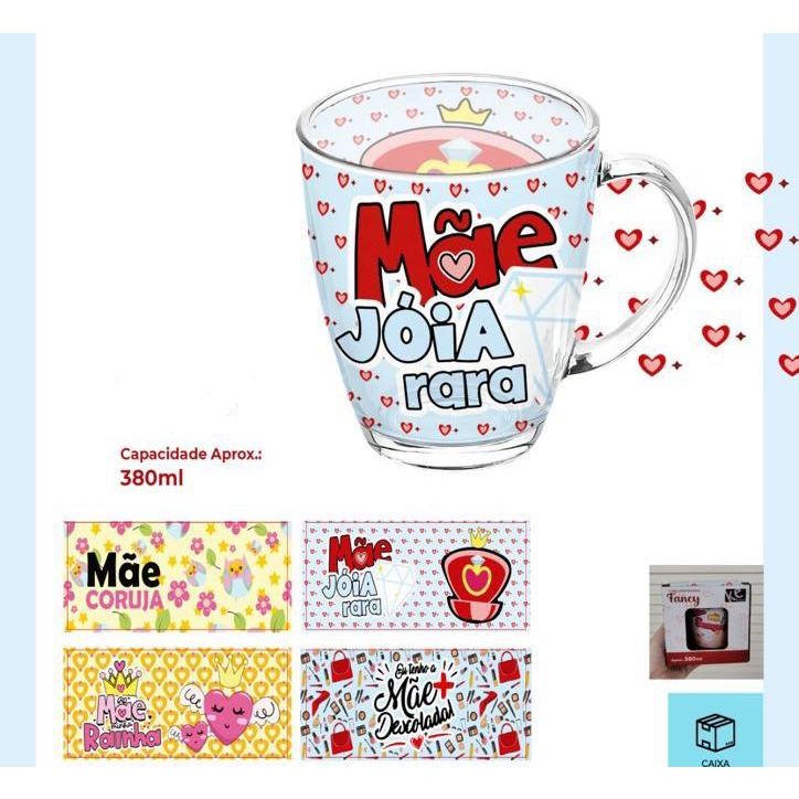 caneca transparente Vidro 380em ser mae eu amo voce/ feliz/ amo tanto que nem /presente estampada