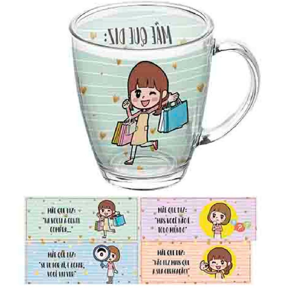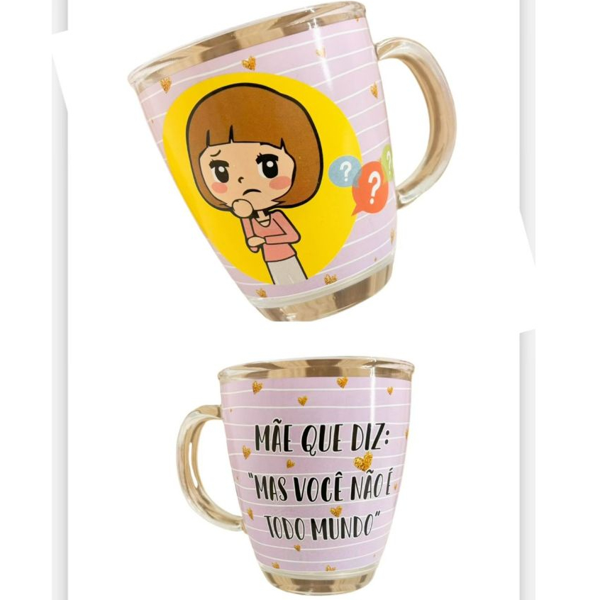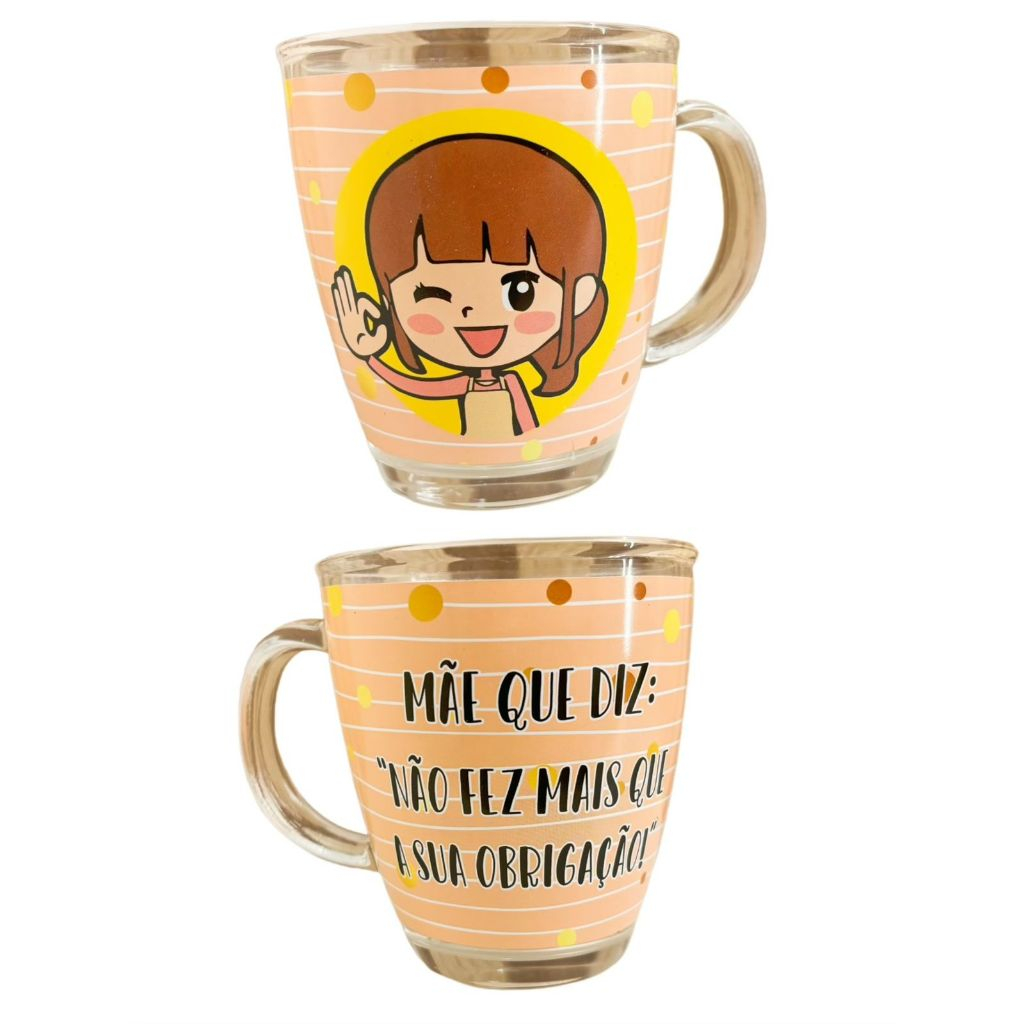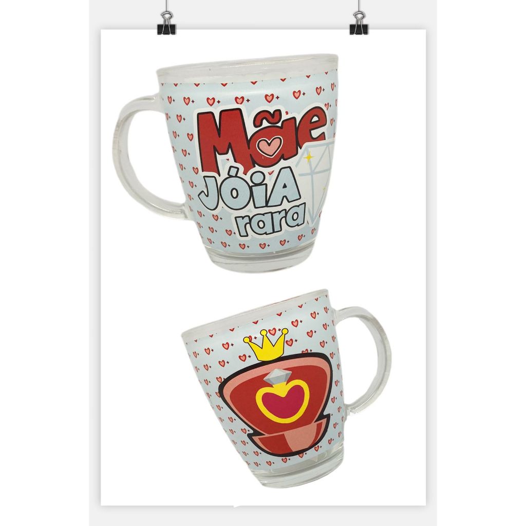 caneca transparente Vidro 380em ser mae eu amo voce/ feliz/ amo tanto que nem /presente estampada