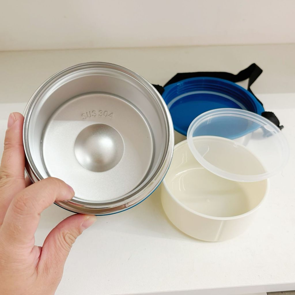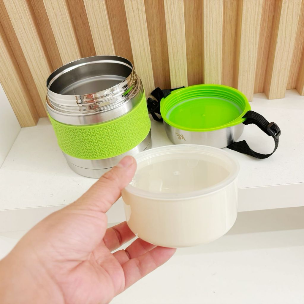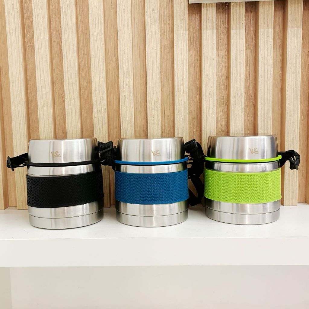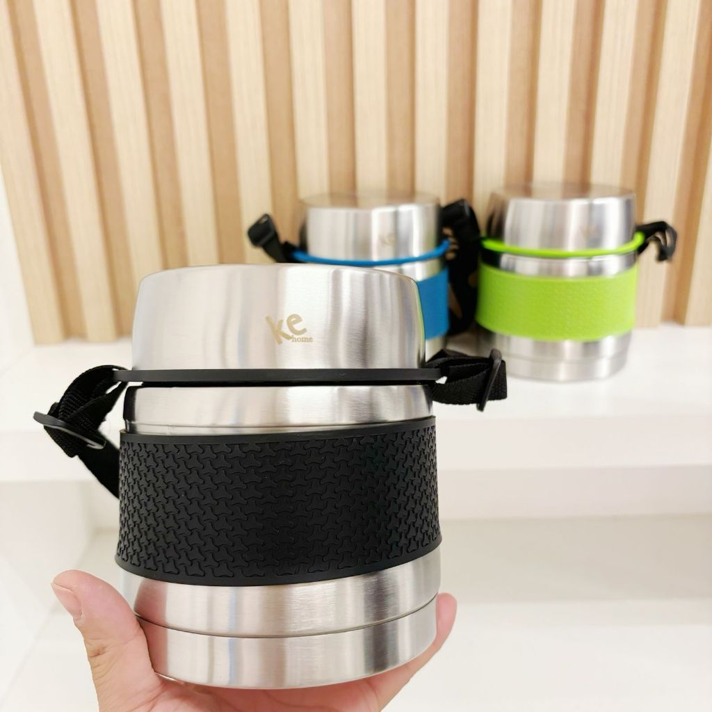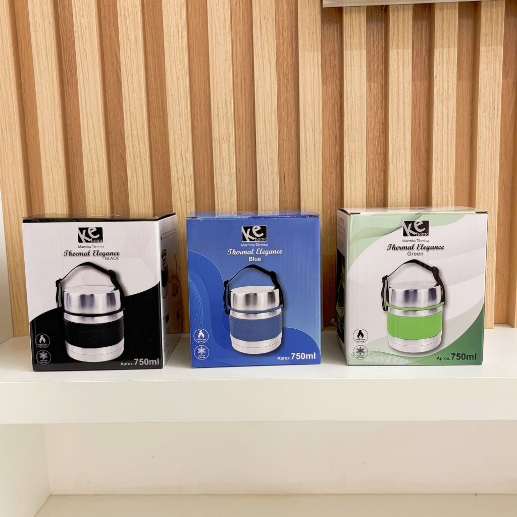 marmita termica preta frio e quente aço inox 304 alta qualidade com alca 750ml dois andares-ke home