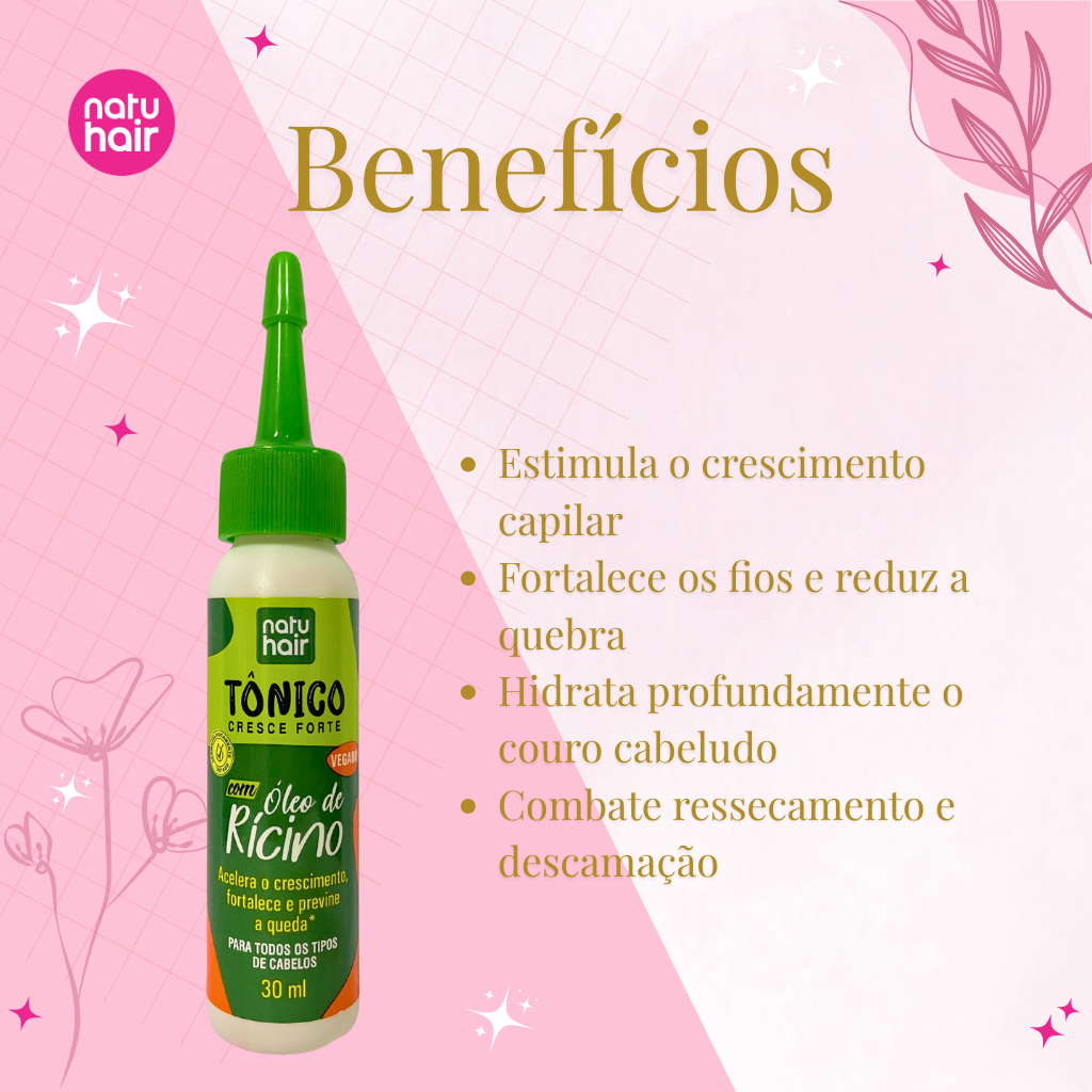 Kit tônico capilar Natuhair 30 ml - Alho + Alecrim + Rícino Super Crescimento Antiqueda Vegano