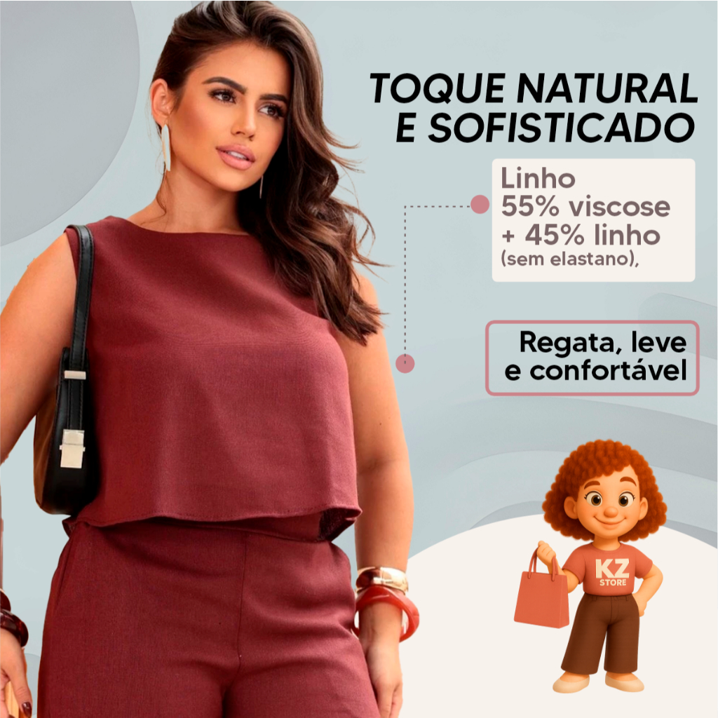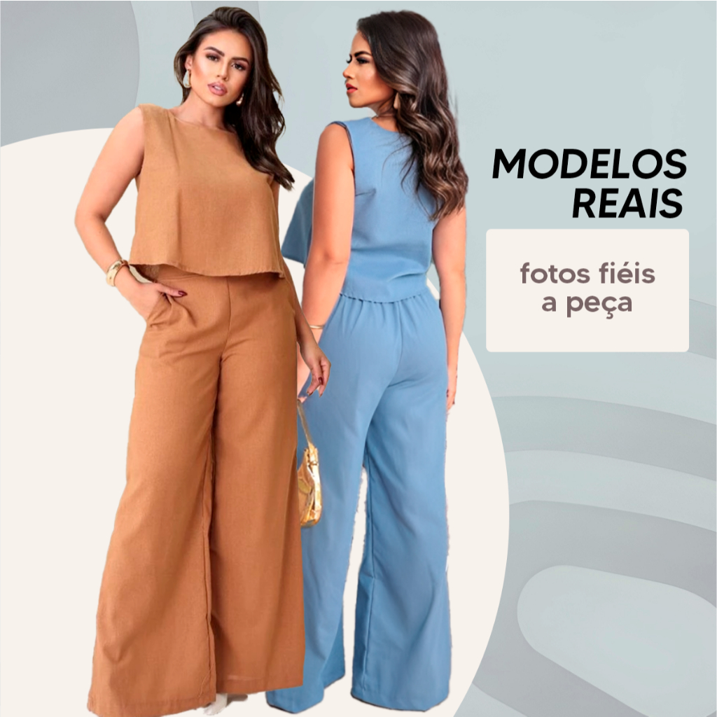 Conjunto Social Feminino Calça e Blusa Em Linho