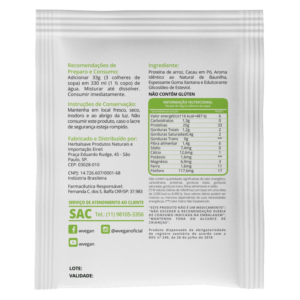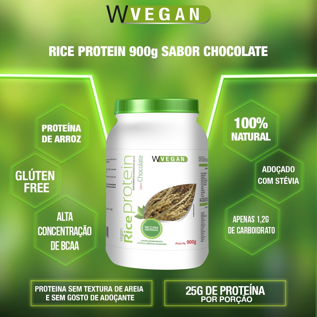 A Rice Protein 1kg Sabor Chocolate 1 Kilo Quilo WVegan Proteina de Arroz
