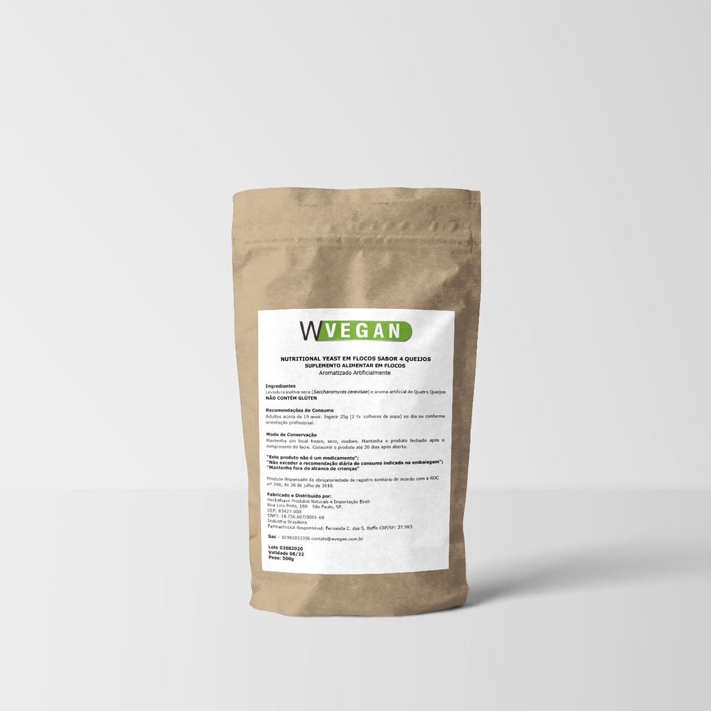 Nutritional Yeast 1kg Sabor 4 Queijos Embalagem Refil WVegan