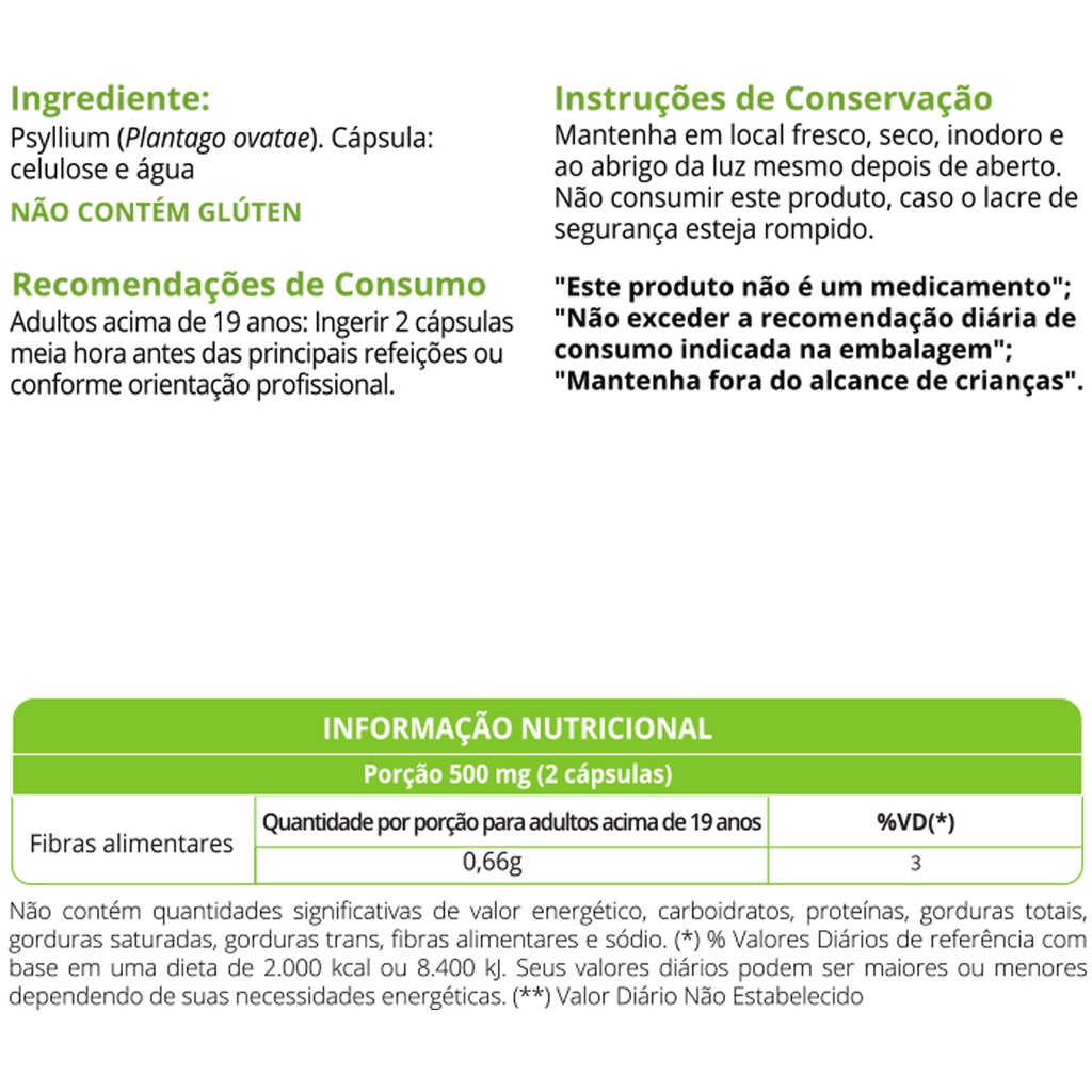 Psyllium 60 capsulas WVegan Psillium Psilium