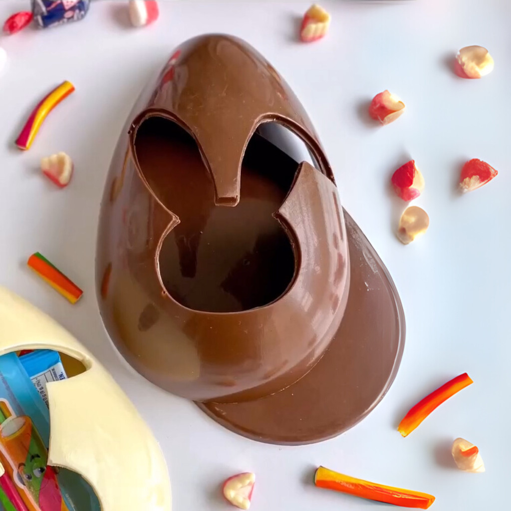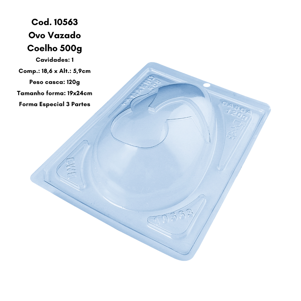 Forma p/ Chocolate Ovo Vazado Coelho 500g Cod. 10563 3 Partes c/ Silicone Bwb