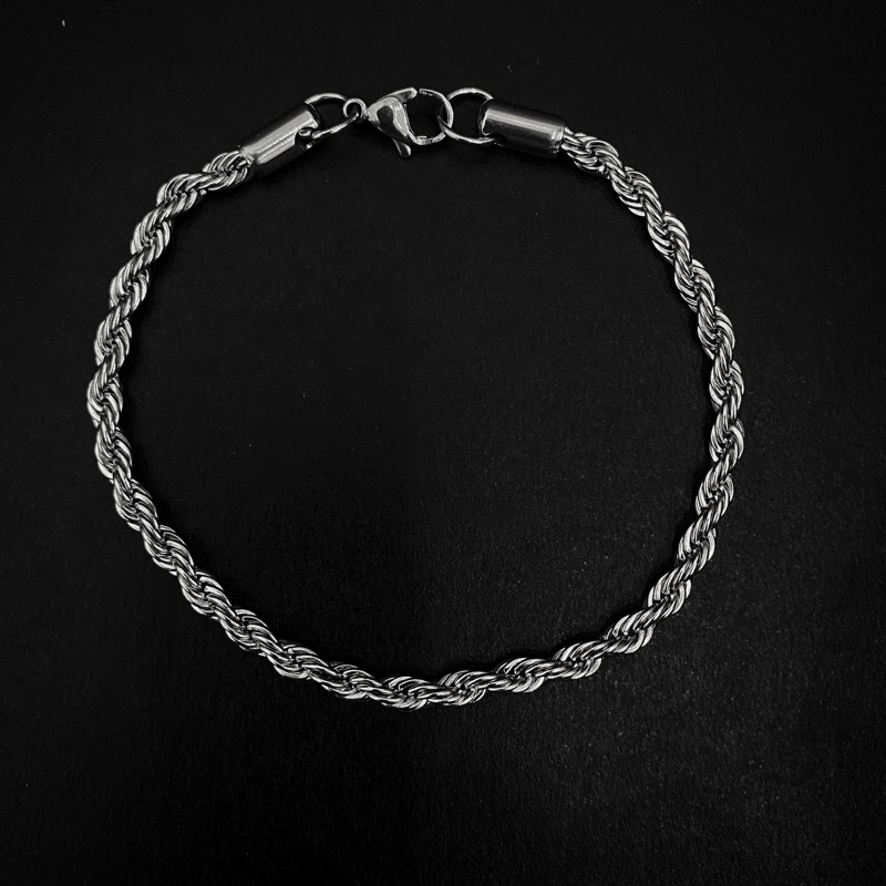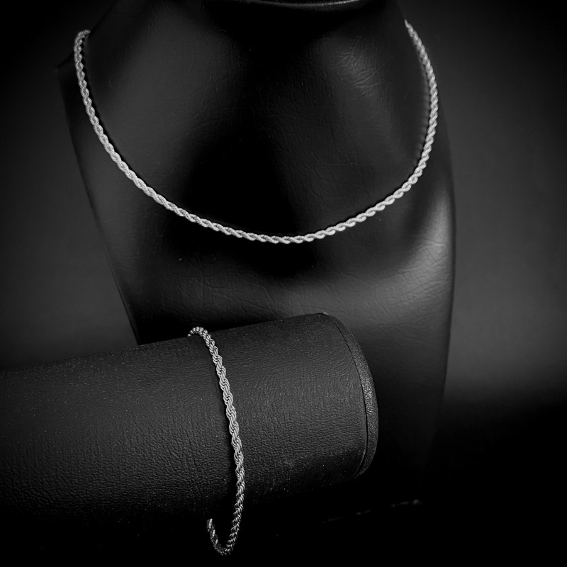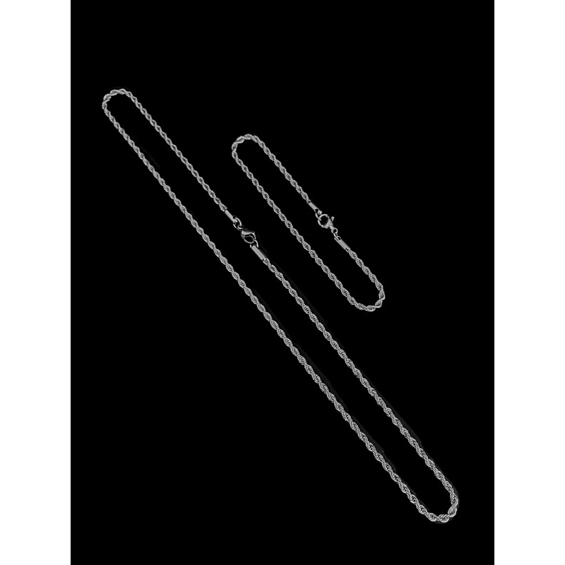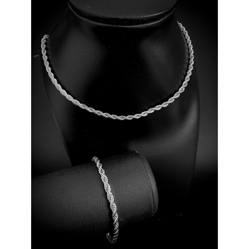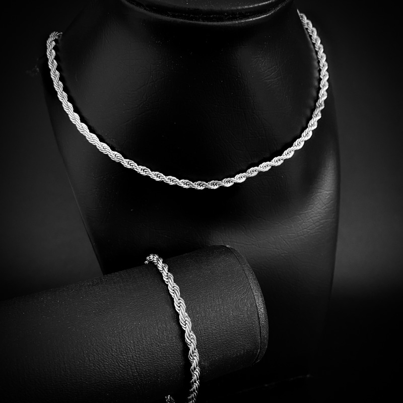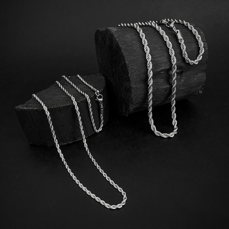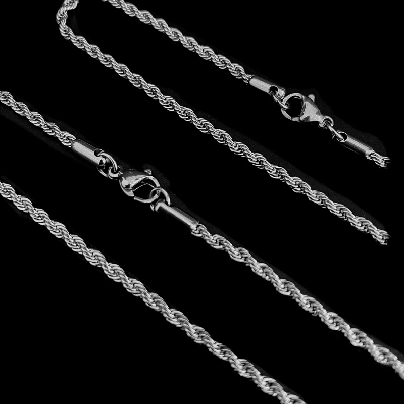 Corrente Colar Pulseira Masculina Feminina Aço Inoxidável Torcida Baiano cor prata 316l Rope Chain