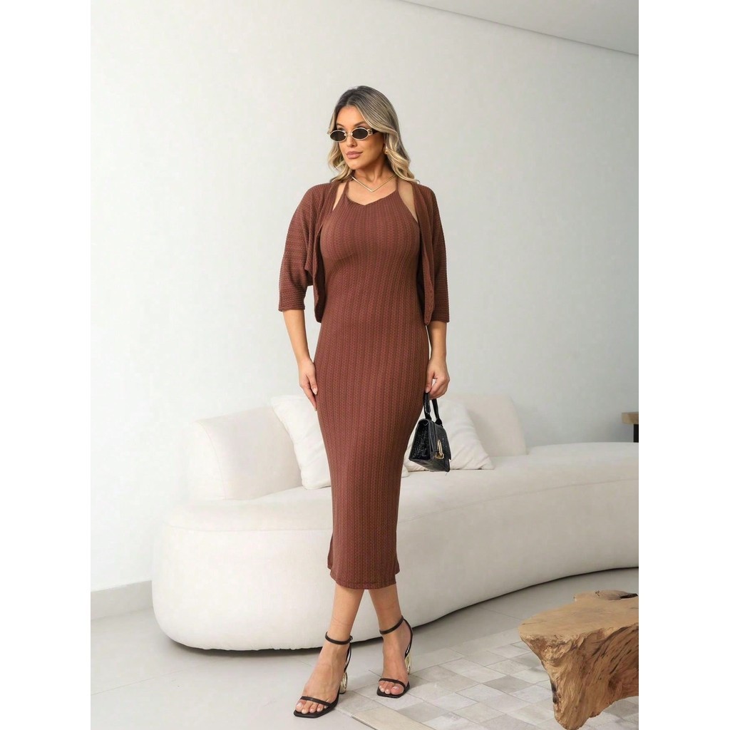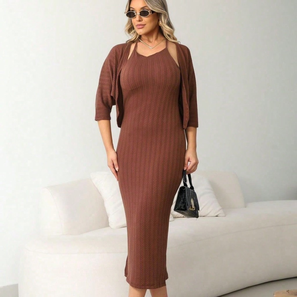 Vestido Mid Malha Tricô Com Casaco (Conjunto) PRIMAVERA/VERÃO