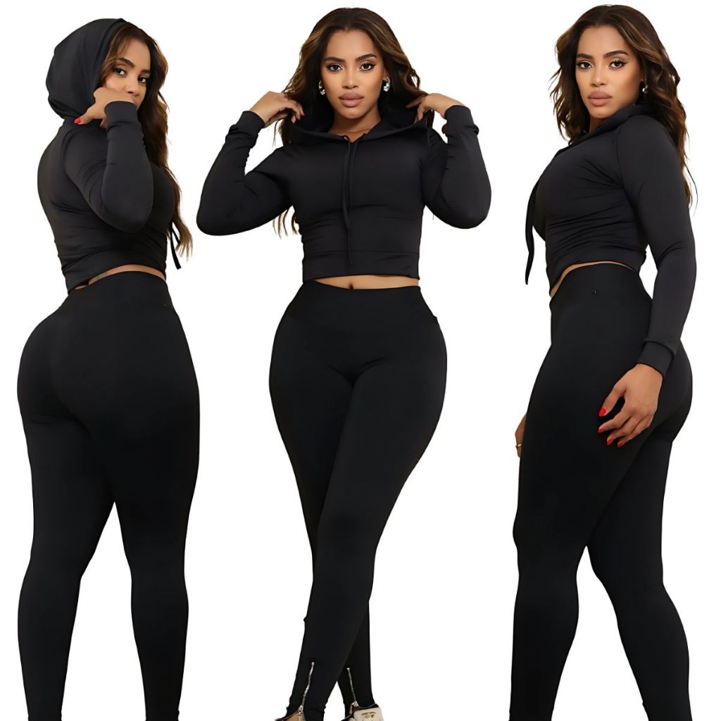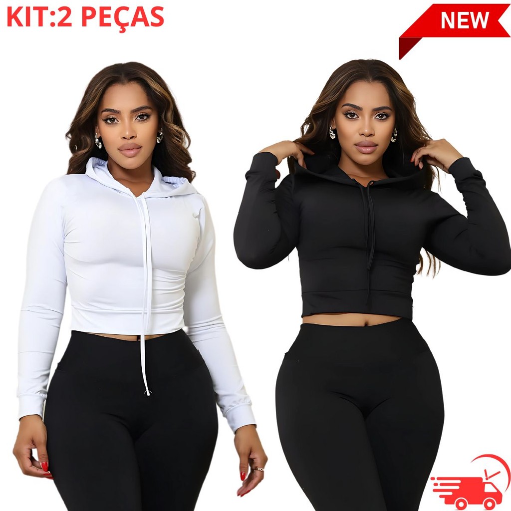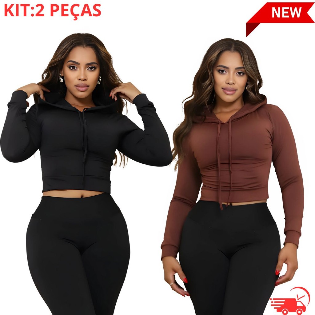 Kit 2 Croppeds Femininos com Capuz e Manga Longa – Moda Inverno, Conforto, Estilo Casual