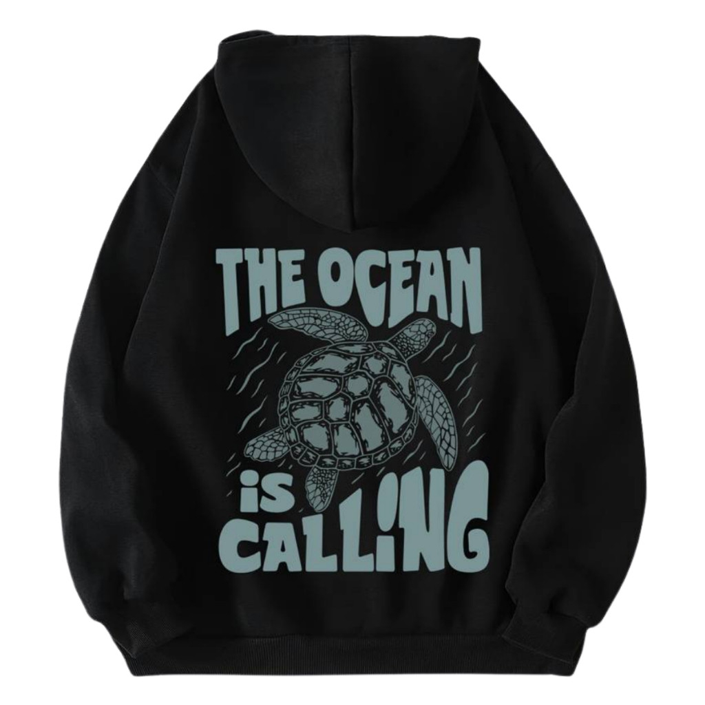 Moletom Inverno Tartarugas Canguru Oceano Estampado Unisex Várias Cores Blusa de Frio com Capuz