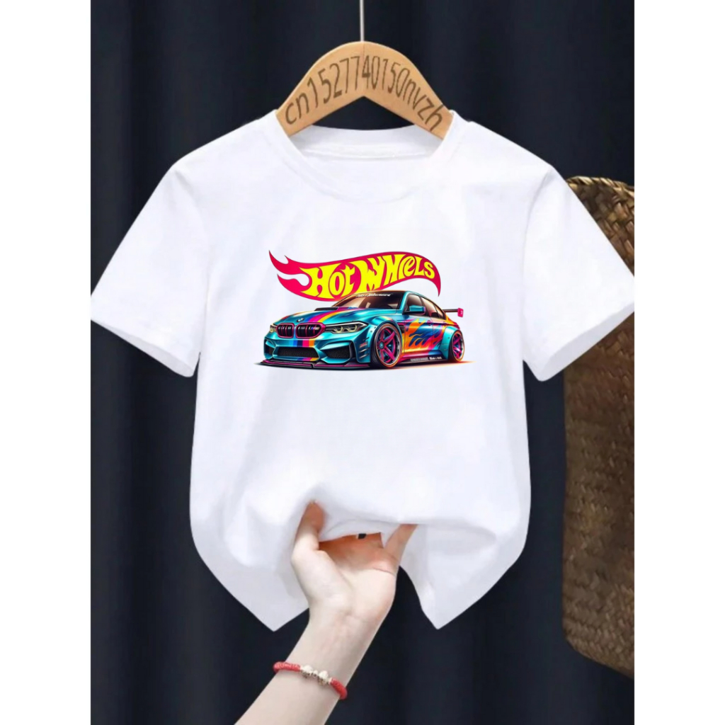 Camiseta Camiseta Infantil Juvenil Unissex Hot Wheels Carro 100% Algodão Lançamento