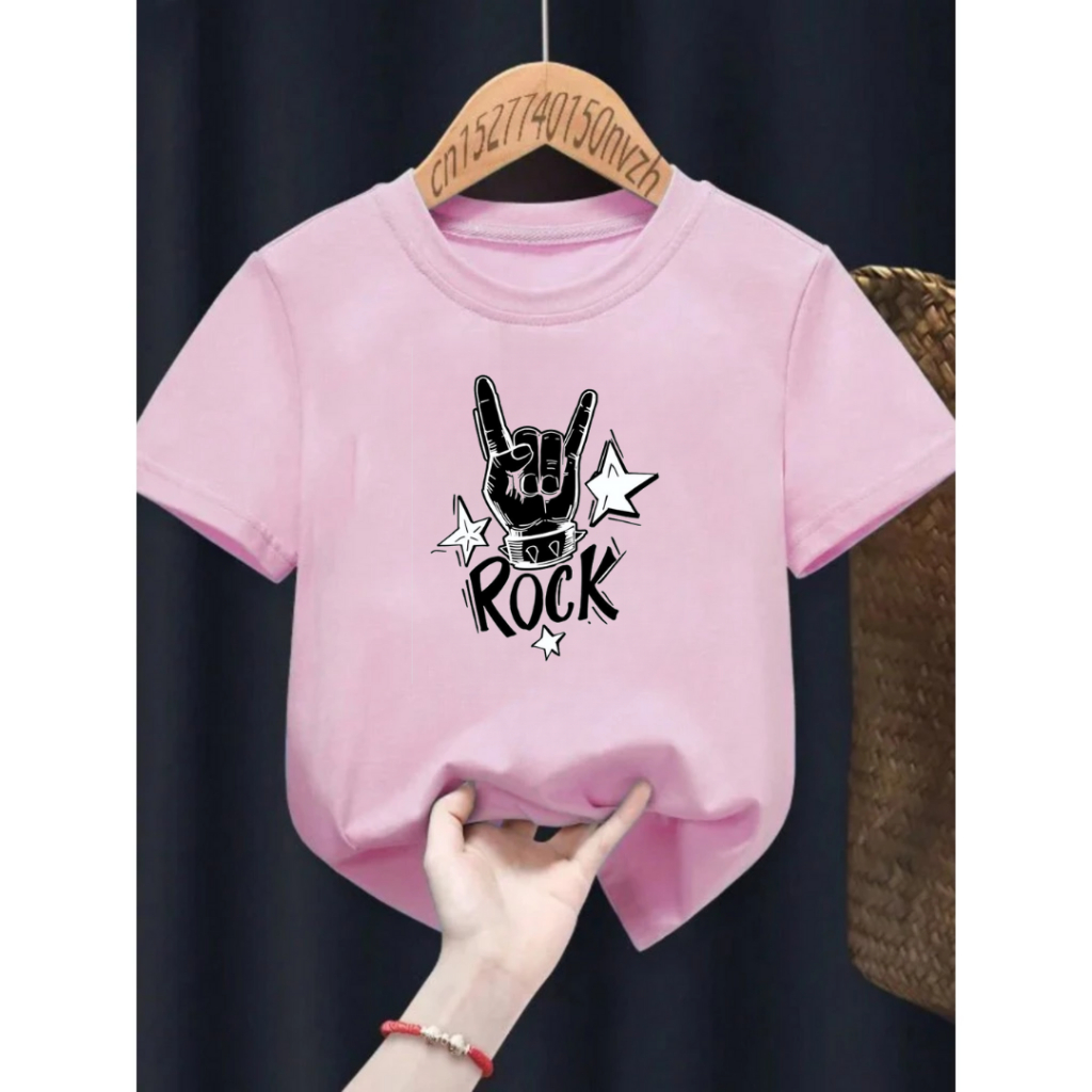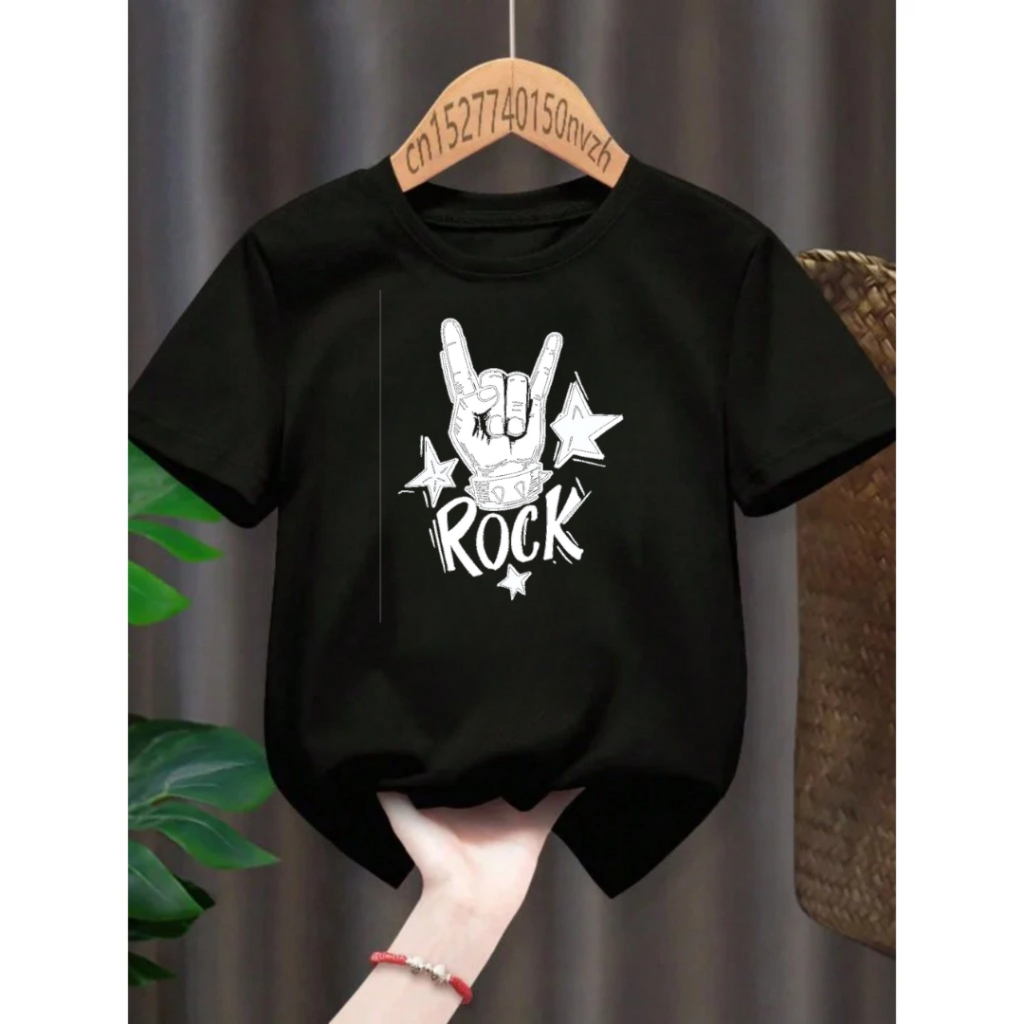 Camiseta Infantil Juvenil Unissex 𝗩𝗮́𝗿𝗶𝗮𝘀 𝗖𝗼𝗿𝗲𝘀 Rock Banda Rock In Roll dedo 100% Algodão