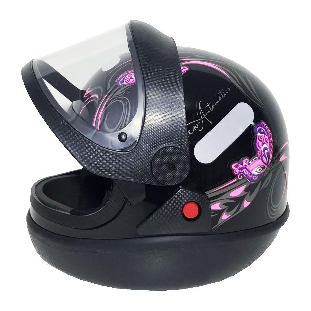 Capacete Bolt Automatico Preto Rosa Viseira Cristal 58