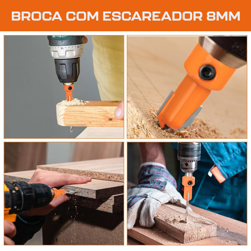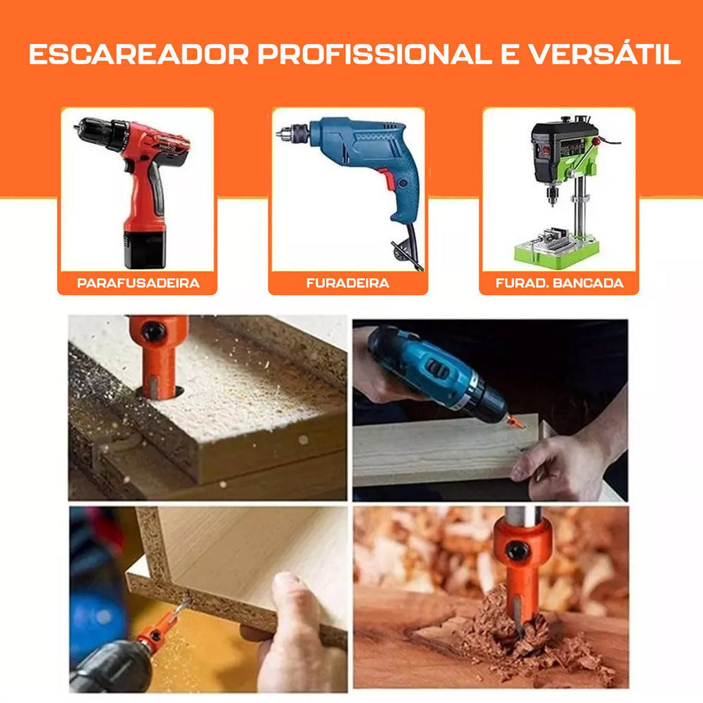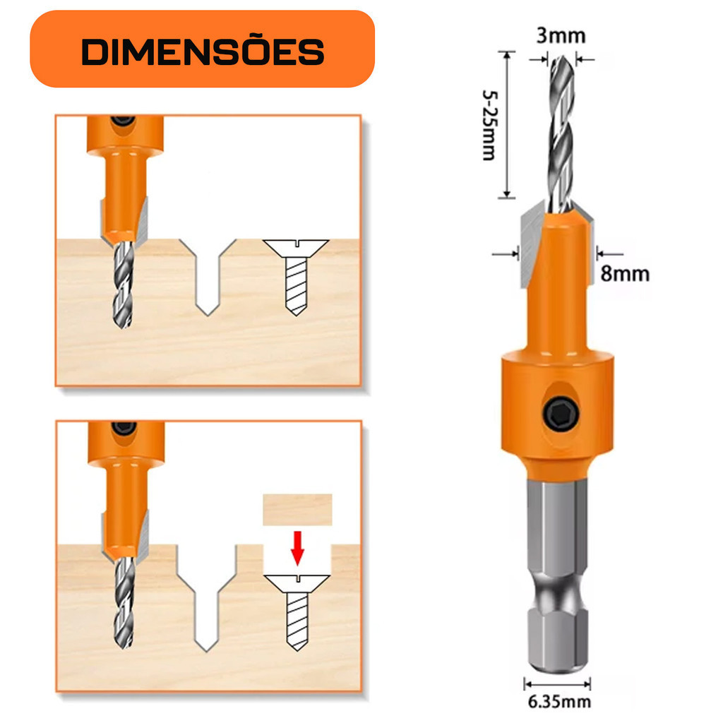 Kit 3 Brocas com Escareador 3mm x 8mm Encaixe 1/4 Madeira