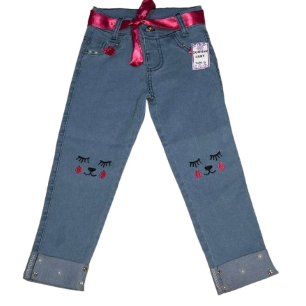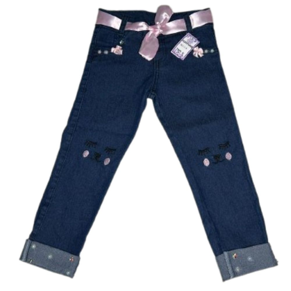 Calça Jeans infantil Menina Skinny Gatinha com Laço Luxo Feminina