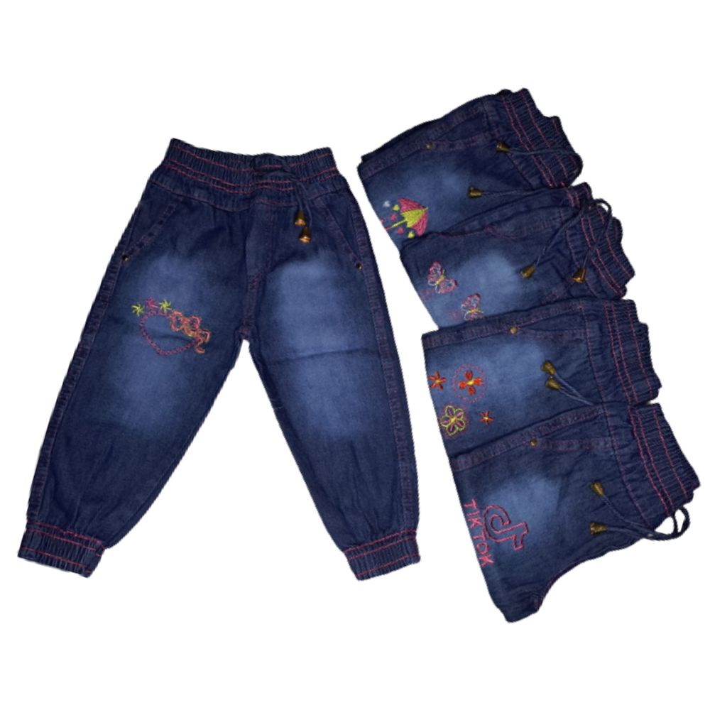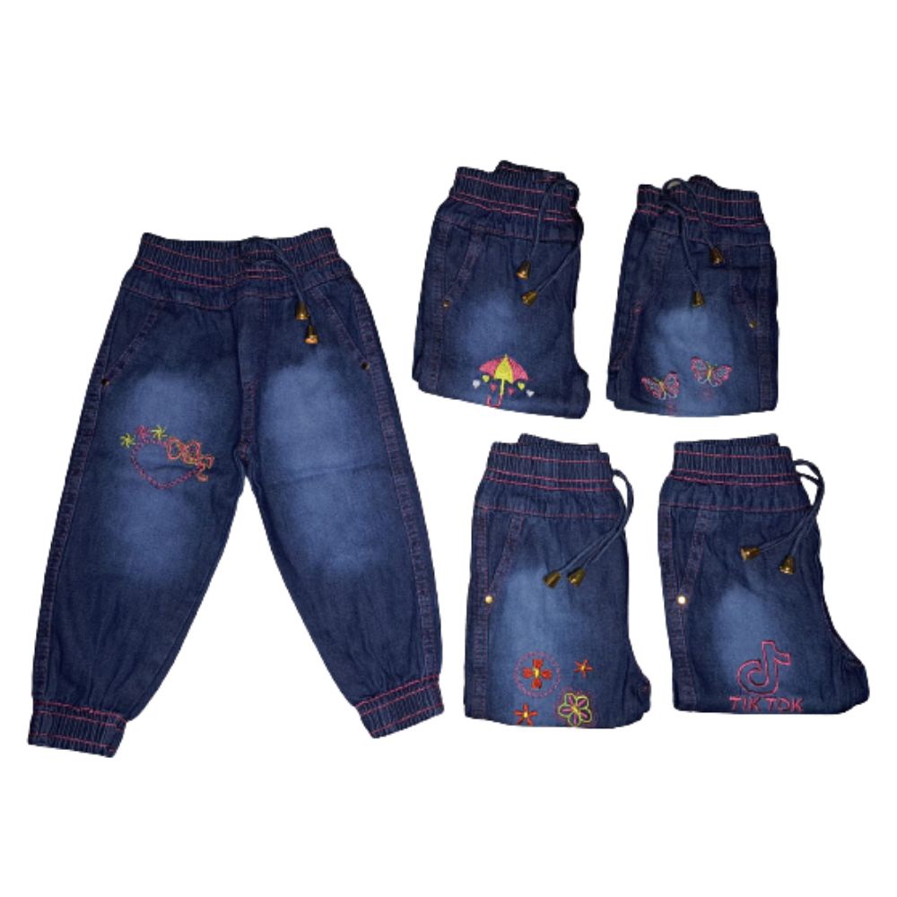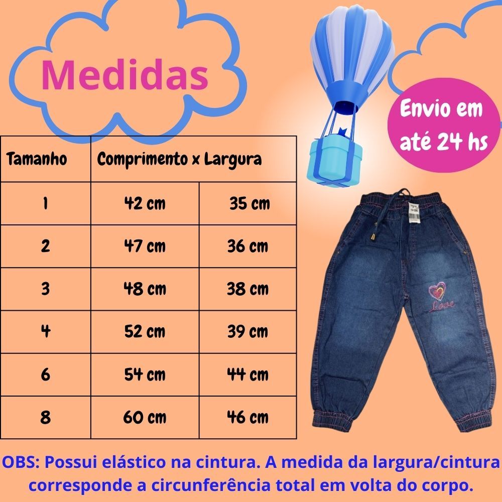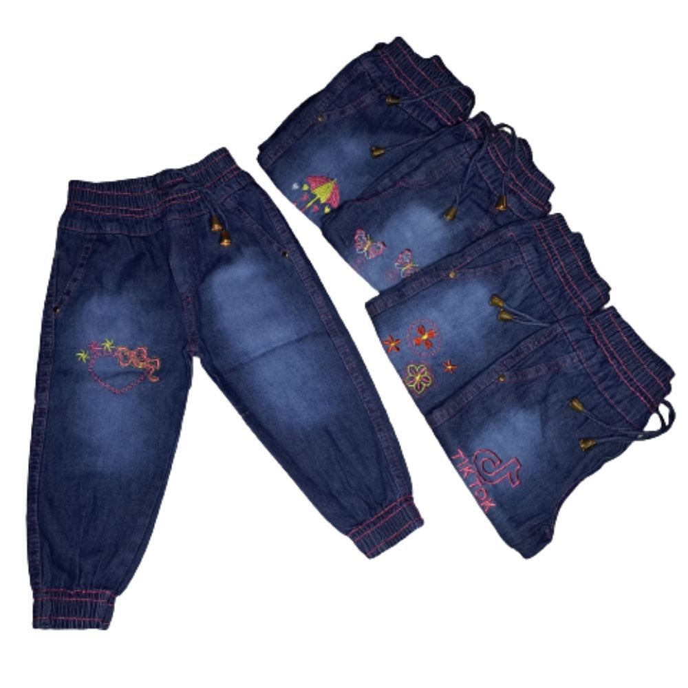 Calça Jeans Infantil Jogger Menina com Elástico na Cintura e Estampa Bordada Tamanhos 1 ao 8