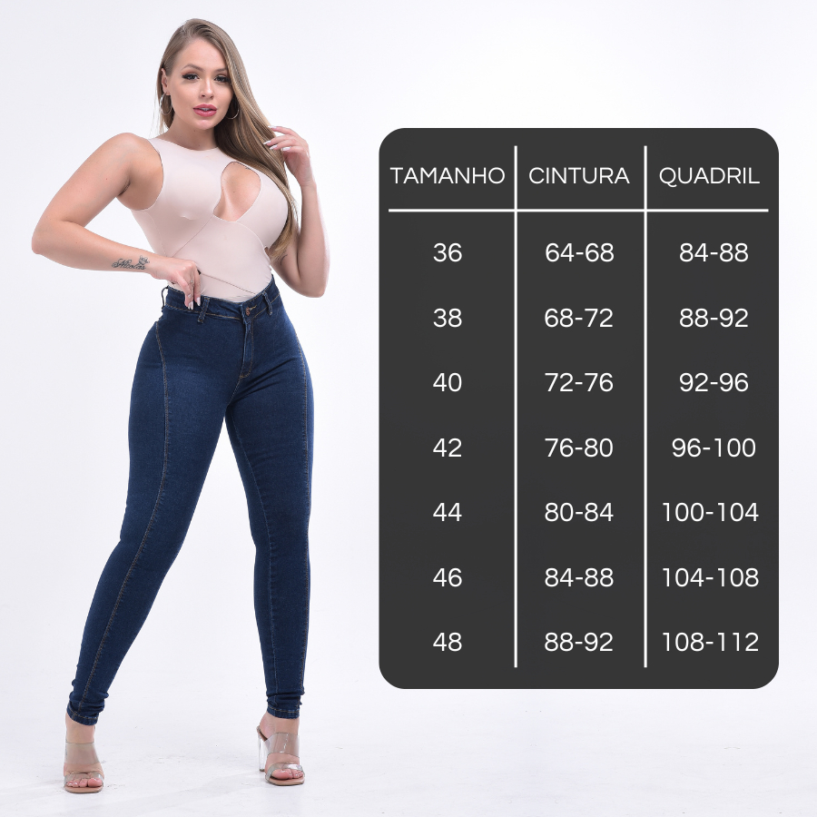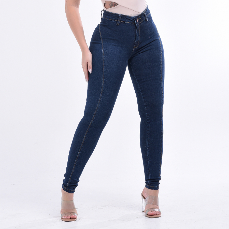 Calça Jeans Skinny Feminina Levanta Bumbum Com Lycra Cintura Alta Sem Bolso